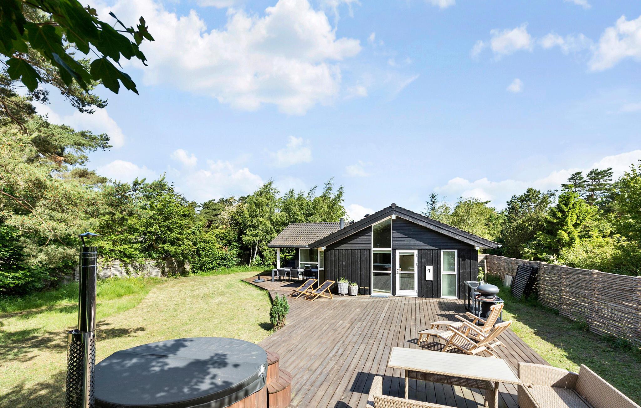 Entspannen Sie auch auf der großzügigen Terrasse mit bequemen Sonnenliegen und einer Schaukelbank. Der weitläufige Garten lädt zu Ballspielen und anderen Aktivitäten im Freien ein. Für erholsame Momente steht ein finnisches Holzbad zur Verfügung. Nutzen Sie den Grill und die Außenküche für Mahlzeiten unter freiem Himmel. Die Nordküste von Seeland gilt als eine der schönsten Ferienregionen Dänemarks und erfreut sich großer Beliebtheit. Erkunden Sie hier malerische Dörfer wie Gilleleje und Rågeleje.