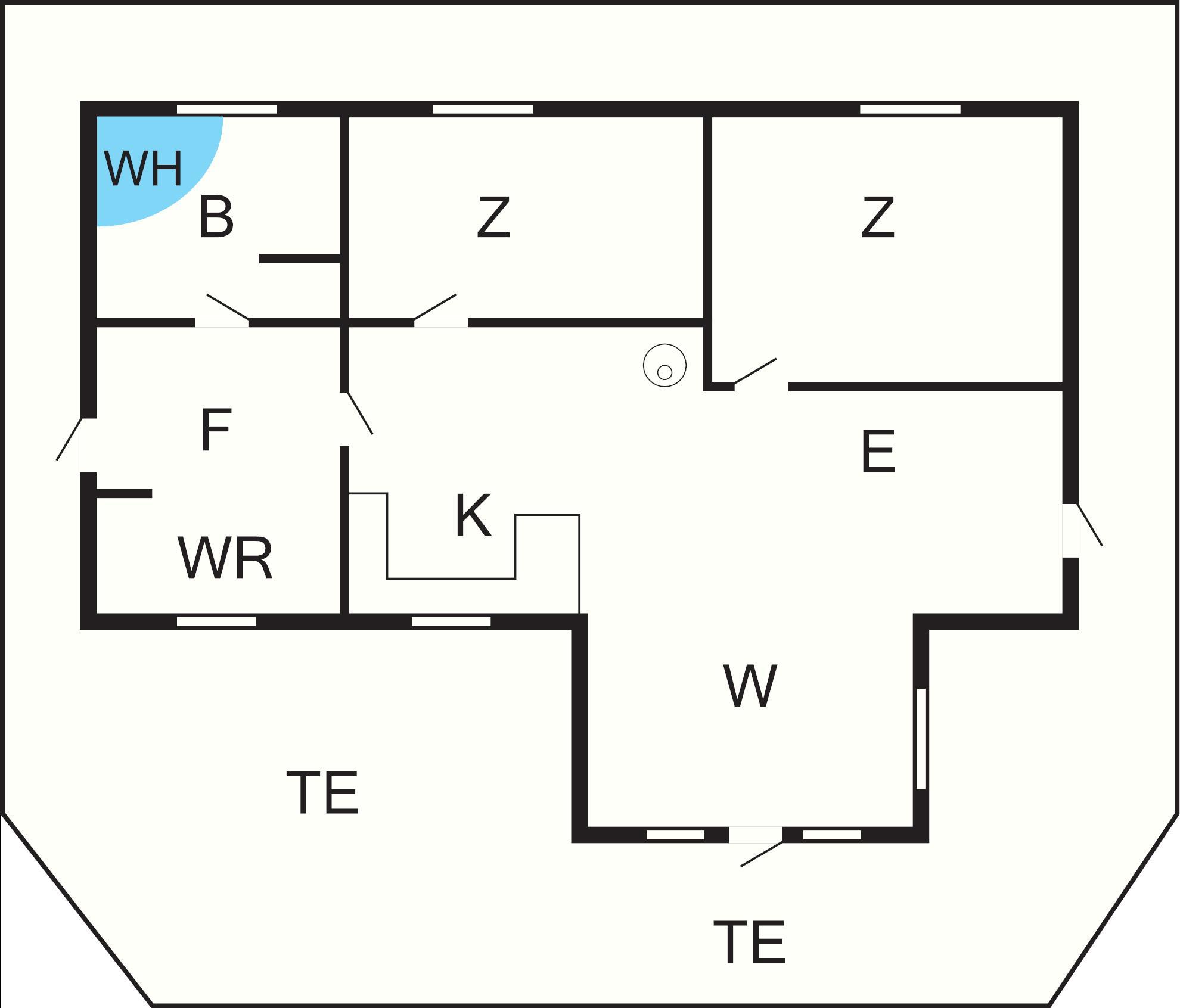 Das Haus verfügt über einen praktischen Eingangsbereich und einen Hauswirtschaftsraum mit Spüle und Waschmaschine. Von hier aus haben Sie Zugang zu einem Badezimmer mit Whirlpool – ideal zum Entspannen nach einem aktiven Tag. Der offene Küchen- und Wohnbereich ist das Herzstück des Hauses und bietet eine helle, gut ausgestattete Küche, eine Essecke und eine gemütliche Sitzecke. Ein Holzofen und eine energieeffiziente Wärmepumpe sorgen für wohlige Wärme, während die großen Fenster die umliegende Natur genießen lassen.