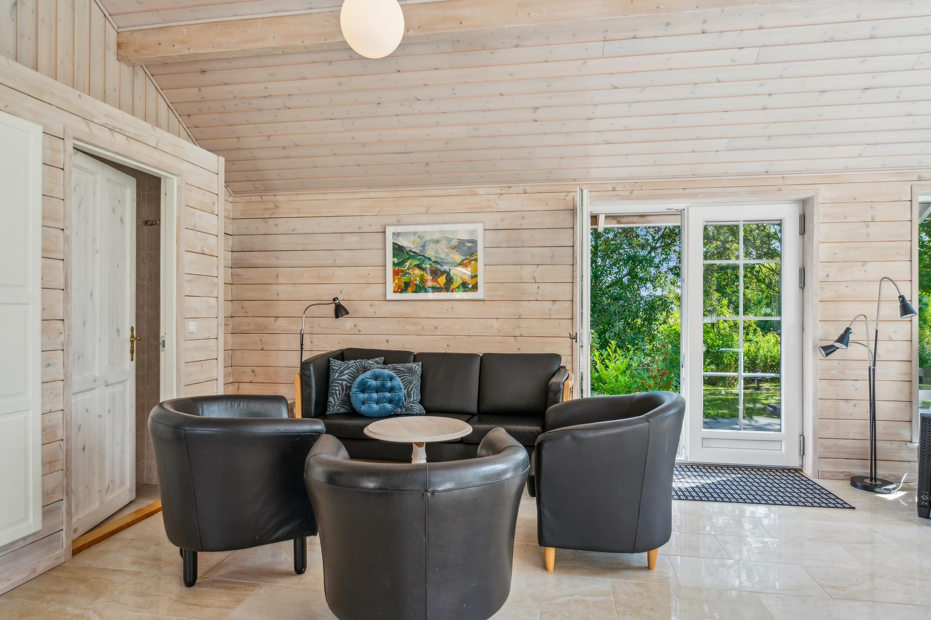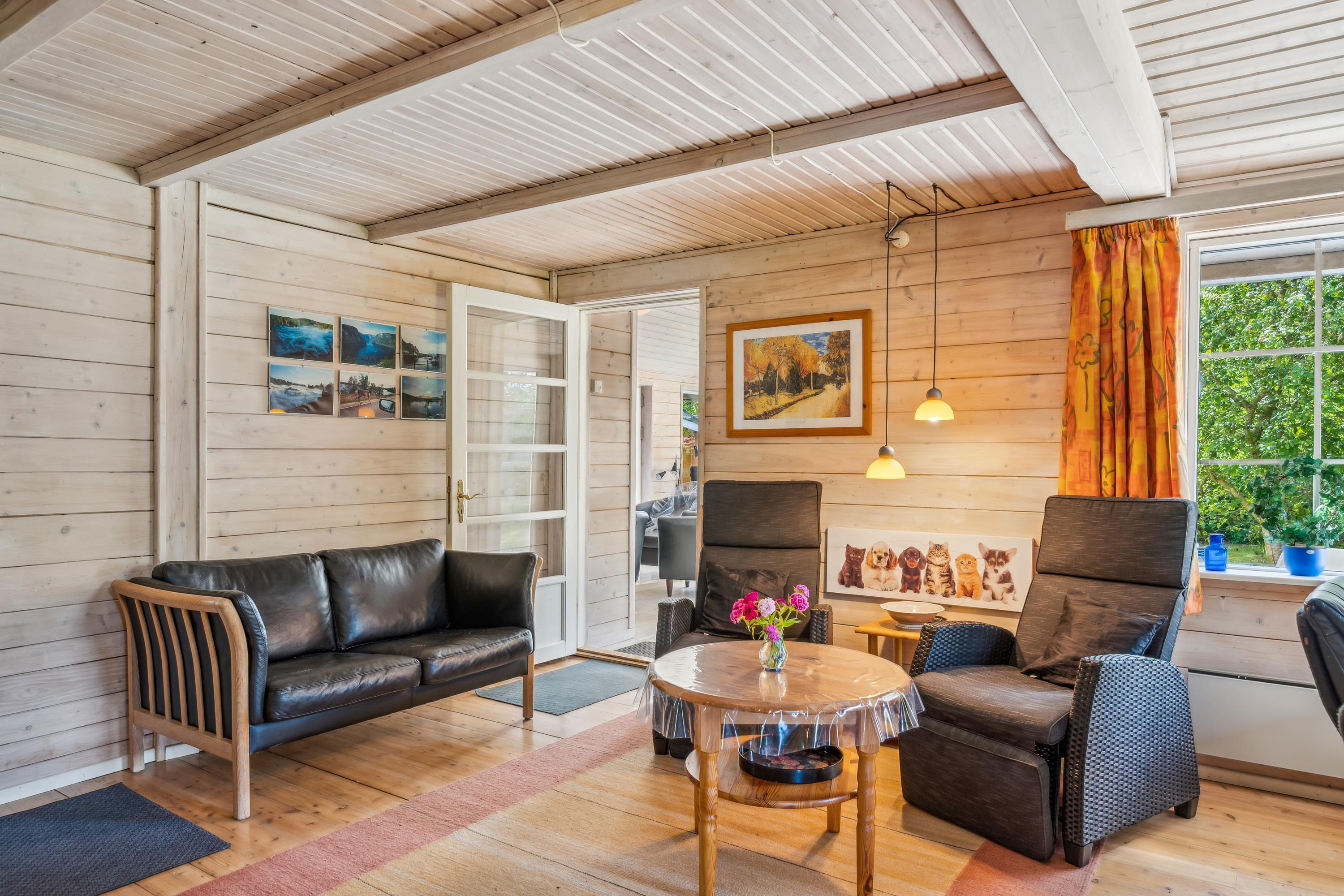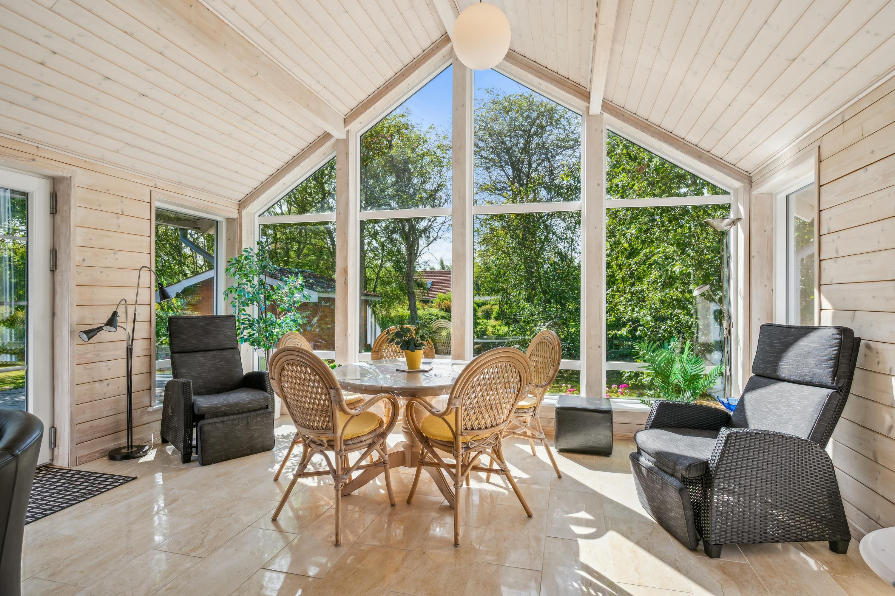 Dieses tolle, große und hochwertig renovierte Blockhaus liegt nur 150 m vom äußerst kinderfreundlichen Sjørup Strand nördlich von Fjellerup entfernt. Es steht auf einem schönen, bewachsenen Naturgrundstück und ist von einer großen Fliesenterrasse mit Gartenmöbeln, Liegestühlen, Sonnenschirm und Grill umgeben. Des Weiteren gibt es eine kleinere, überdachte Holzterrasse mit Zugang von Essbereich/Küche, einen schönen Wintergarten mit Panoramafenstern sowie einen Balkon im 1. Stock mit Zugang vom Schlafzimmer. Das perfekte Haus für einen gelungenen Familienurlaub.
