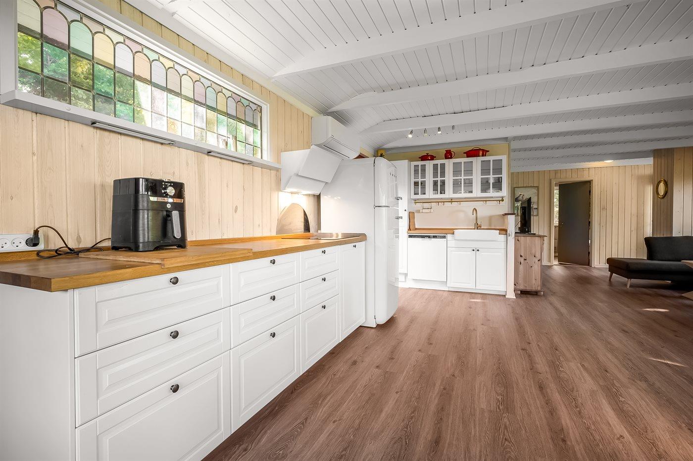 Nur etwa 150 Meter entfernt erreichst du das Meer mit einem Badebereich, der besonders kinderfreundlich ist, da das Wasser sehr seicht ist. Einen breiten Sandstrand und ein bekanntes Eiscafé findest du in der Ferienstadt Fjellerup, etwa 10 Kilometer vom Haus entfernt. In Ørsted, Allingåbro und Fjellerup gibt es außerdem gute Einkaufsmöglichkeiten. Hier herrscht vor allem im Sommer echte Ferienatmosphäre mit einer großen Auswahl an Eiscafés, Cafés und vielem mehr.