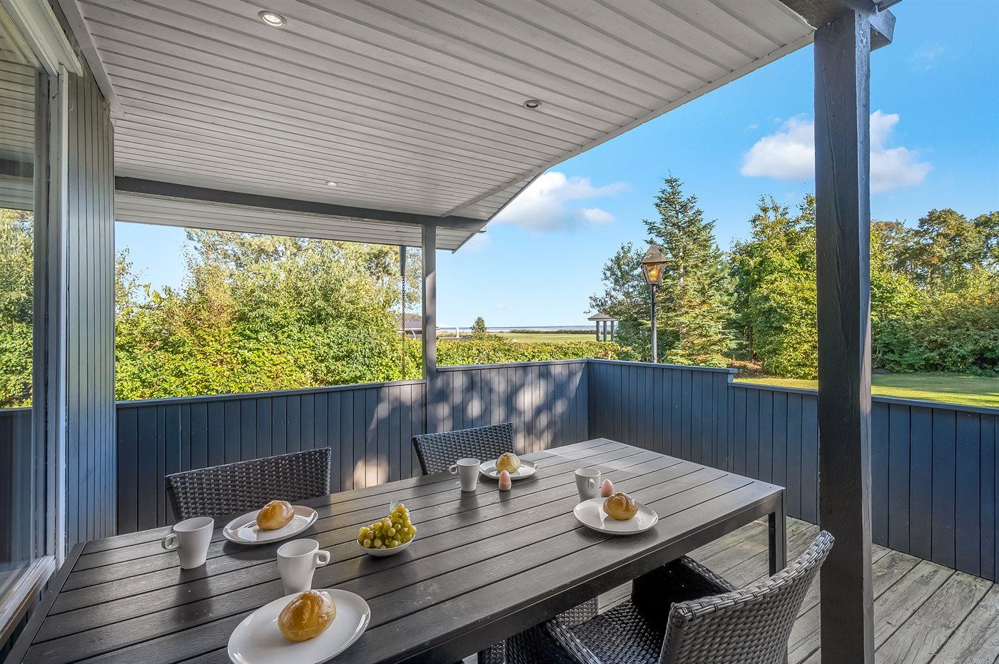 Das Ferienhaus liegt auf einem herrlichen Grundstück mit viel Platz für Aktivitäten im Freien. Es gibt eine schöne Terrasse, auf der du die Sonne genießen kannst, während du gleichzeitig einen guten Überblick über den Garten hast, wo die Kinder spielen können. Von hier aus hast du natürlich ebenfalls einen tollen Blick auf das Wasser. Auf dem überdachten Teil der Terrasse kannst du die lauen Sommerabende entspannt ausklingen lassen.