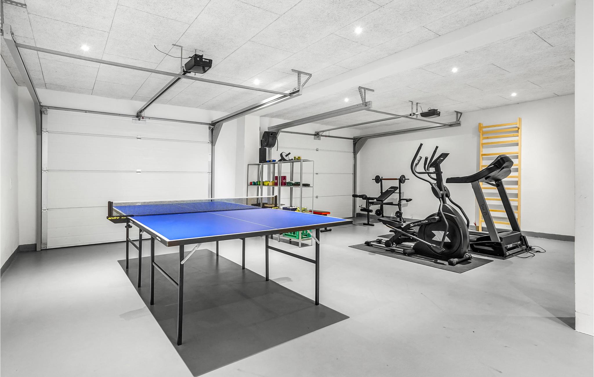 Das Haus ist hell und komfortabel eingerichtet und bietet den perfekten Rahmen für einen Aufenthalt, an den Sie sich gerne erinnern werden. Das ganze Haus ist mit einer Fußbodenheizung ausgestattet, so dass es das ganze Jahr über angenehm ist. Das Haus verfügt über 5 Zimmer mit Doppelbetten, und Zimmer Nr. 6, das sich im Untergeschoss befindet, hat 2 Doppelstockbetten und 2 zusätzliche Matratzen. Im Aktivitätsraum im Untergeschoss können Sie Billard, Darts und Tischtennis spielen, und für Ihre Kinder gibt es verschiedene Spielgeräte zur Unterhaltung. Außerdem gibt es eine attraktive Bar mit Fernseher, wo Sie sich amüsieren können. Im Souterrain finden Sie außerdem Fitnessgeräte und einen Spielautomaten, so dass für jeden etwas dabei ist.