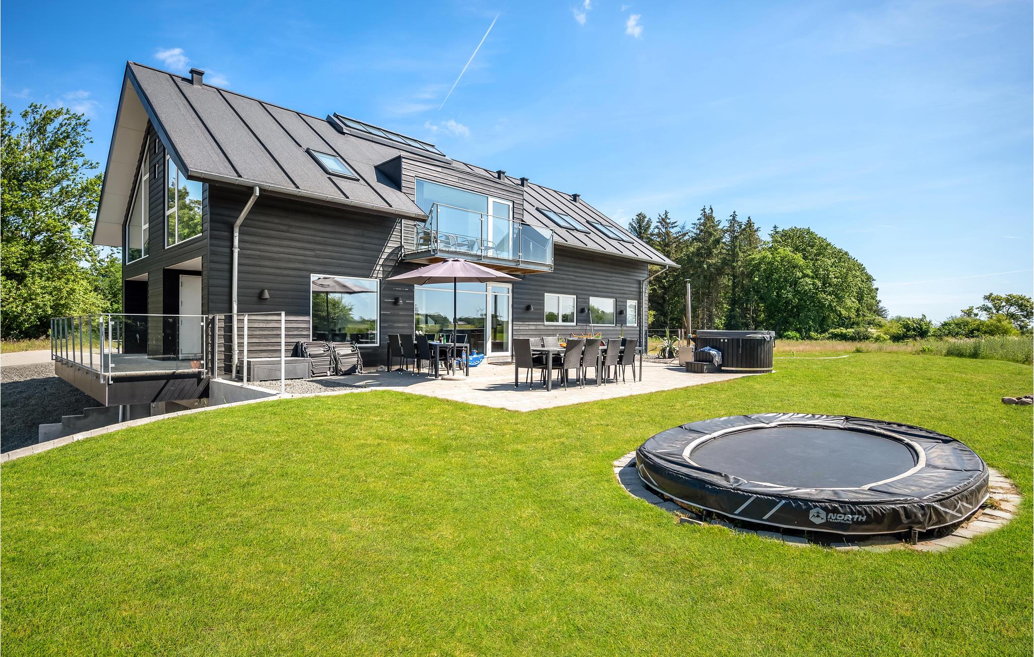Geräumiges Ferienhaus in Dänemark mit Wellness, Aktivitätsraum und großem Garten für erholsame Tage.