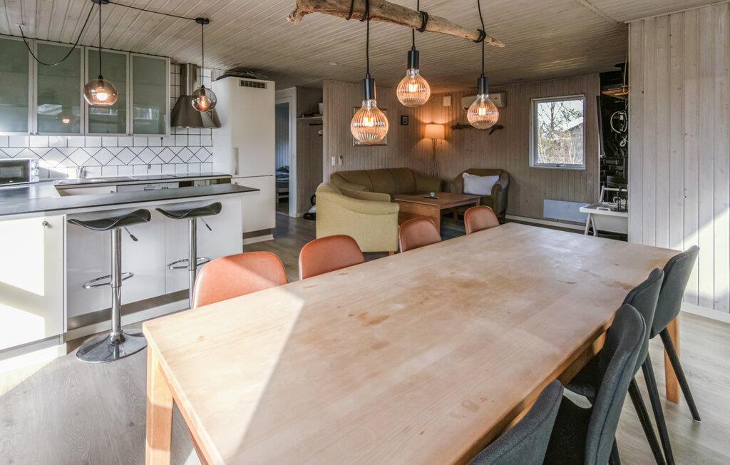 Richten Sie sich mit Ihren Liebsten in diesem großzügig gestalteten Haus ein, das zu jeder Jahreszeit ideale Voraussetzungen für eine gemeinsame Auszeit bietet. Verbringen Sie entspannte Stunden im lichtdurchfluteten Wohnbereich, der mit seinen holzverkleideten Wänden eine warme Atmosphäre ausstrahlt. Nehmen Sie in der gemütlichen Essecke Platz und genießen Sie gemeinsame Mahlzeiten in geselliger Runde. Entspannen Sie im Innenpool, der unabhängig vom Wetter für Badefreuden sorgt.