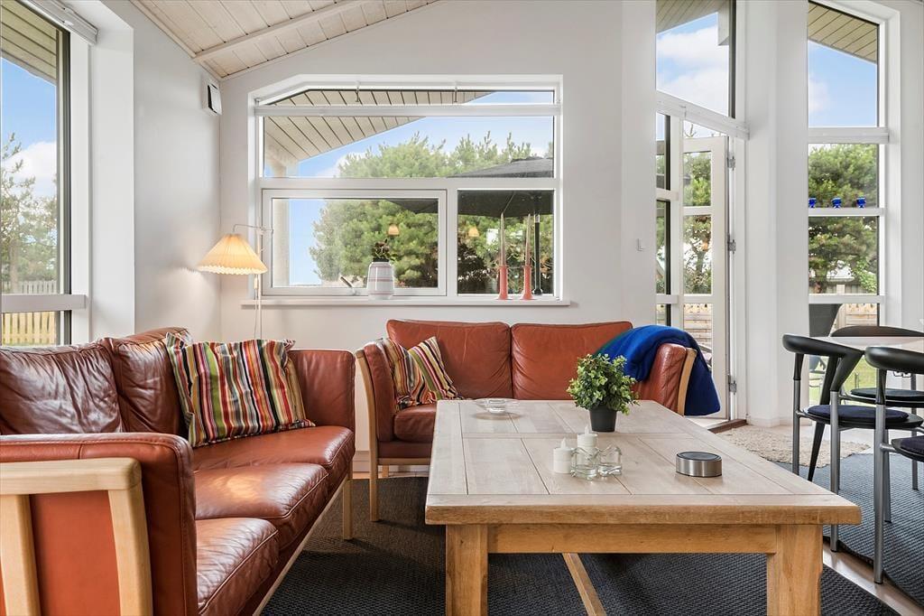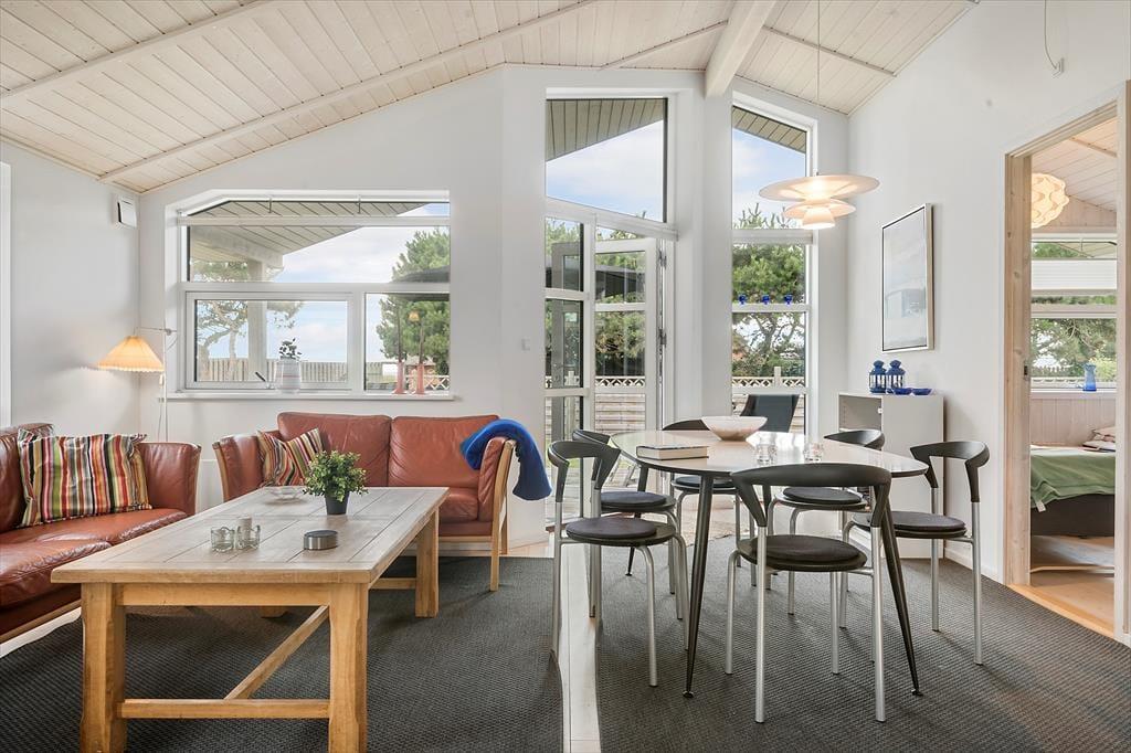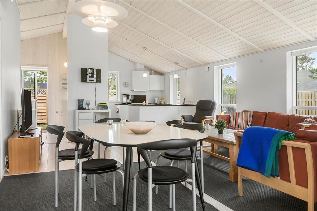 Einrichtung: Dieses attraktive, helle und ganzjährig isolierte Ferienhaus bietet eine einladende Atmosphäre mit offenen Decken in fast allen Räumen. Das Ferienhaus ist geschmackvoll eingerichtet mit einer kombinierten Küche und einem Wohnbereich. Die helle Küche ist mit einem Einbauofen, Kochfeldern, einer Spülmaschine und einem Kühlschrank mit Gefrierfach ausgestattet. Das schöne, helle Wohnzimmer profitiert von hervorragendem Lichteinfall durch große Fensterpartien und hat direkten Zugang zur Terrasse. Der Wohnbereich verfügt über eine gemütliche Essecke, bequeme Sofas und einen Sessel sowie einen Fernseher mit einem großen Allente-TV-Paket und Chromecast, der Zugang zu Streamingdiensten bietet (eigenes Login erforderlich).