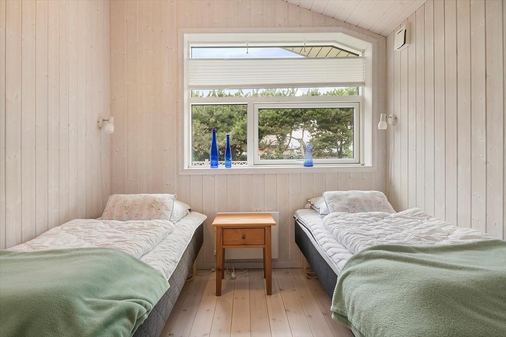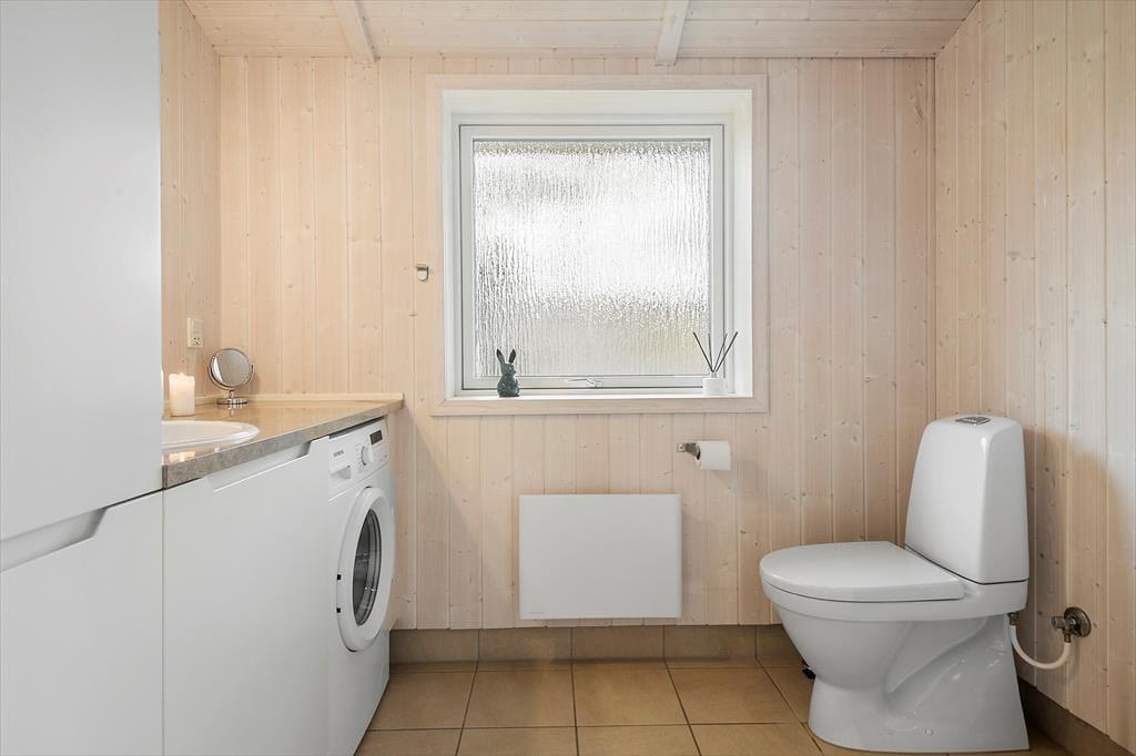Das Badezimmer ist modern und funktional gestaltet mit Dusche, Fußbodenheizung und Waschmaschine. Das Ferienhaus verfügt über zwei Schlafzimmer, eines mit einem Doppelbett und das andere mit zwei Einzelbetten. Zudem stehen ein Kinderbett und ein Hochstuhl zur Verfügung. Beheizt wird das Haus durch eine Wärmepumpe und Elektroheizung.