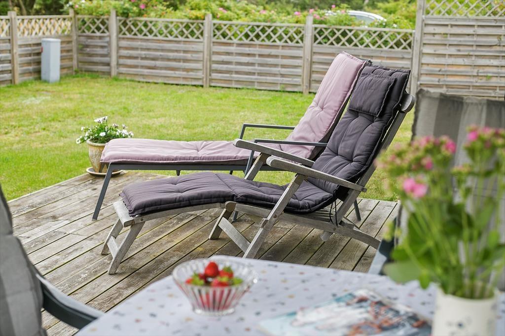 Außenbereich: Das Ferienhaus liegt auf einem fast vollständig eingezäunten Grundstück von 450 m² mit einem kleinen, schönen Garten. Die teilweise überdachte Holzterrasse ist perfekt, um die Sonne zu genießen und abends den Grill anzuzünden. Zum Ferienhaus gehören Gartenmöbel, Liegestühle, ein Sonnenschirm und ein Grill.