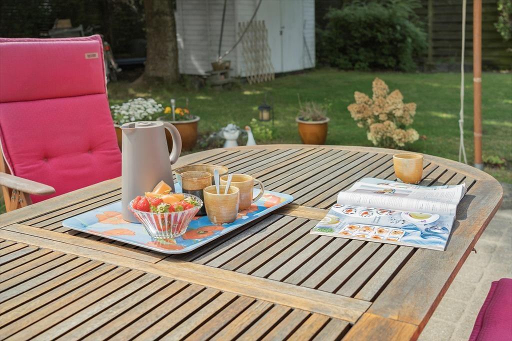 Genieße das Leben im Freien: Das 1000 m² große, Grundstück mit einem schönen Garten bietet viel Platz, damit Ihr Hund herumlaufen kann. Die gemütliche Terrasse ist perfekt zum Entspannen und mit Gartenmöbeln, Sonnenschirm und einem Grill ausgestattet, die herrliche Mahlzeiten im Freien ermöglichen.
