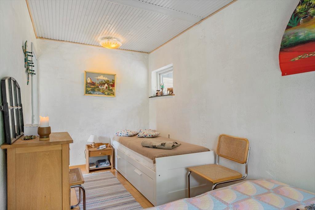 Das Badezimmer verfügt über einen Fliesenboden, eine Dusche und eine Waschmaschine. Das Schlafzimmer ist mit einem Doppelbett und einem Einzelbett ausgestattet, das sich leicht in ein weiteres Doppelbett umwandeln lässt. Das Haus wird effizient mit einer Wärmepumpe, einem Holzofen und Elektroheizung beheizt, sodass Komfort das ganze Jahr über gewährleistet ist.