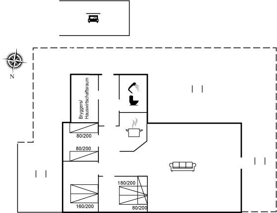 Die Ferienunterkunft liegt auf einem 1406 m² großen Gartengrundstück. Die Entfernung zum Meer beträgt 490 m. Die nächste Einkaufsmöglichkeit liegt 2700 m entfernt. Es steht ein offenes Terrassenareal zur Verfügung. Schaukel.Lagerfeuerstelle. Es steht ein Grill zur Verfügung. Es steht ein Carport zur Verfügung. Parkplatz auf dem Grundstück.