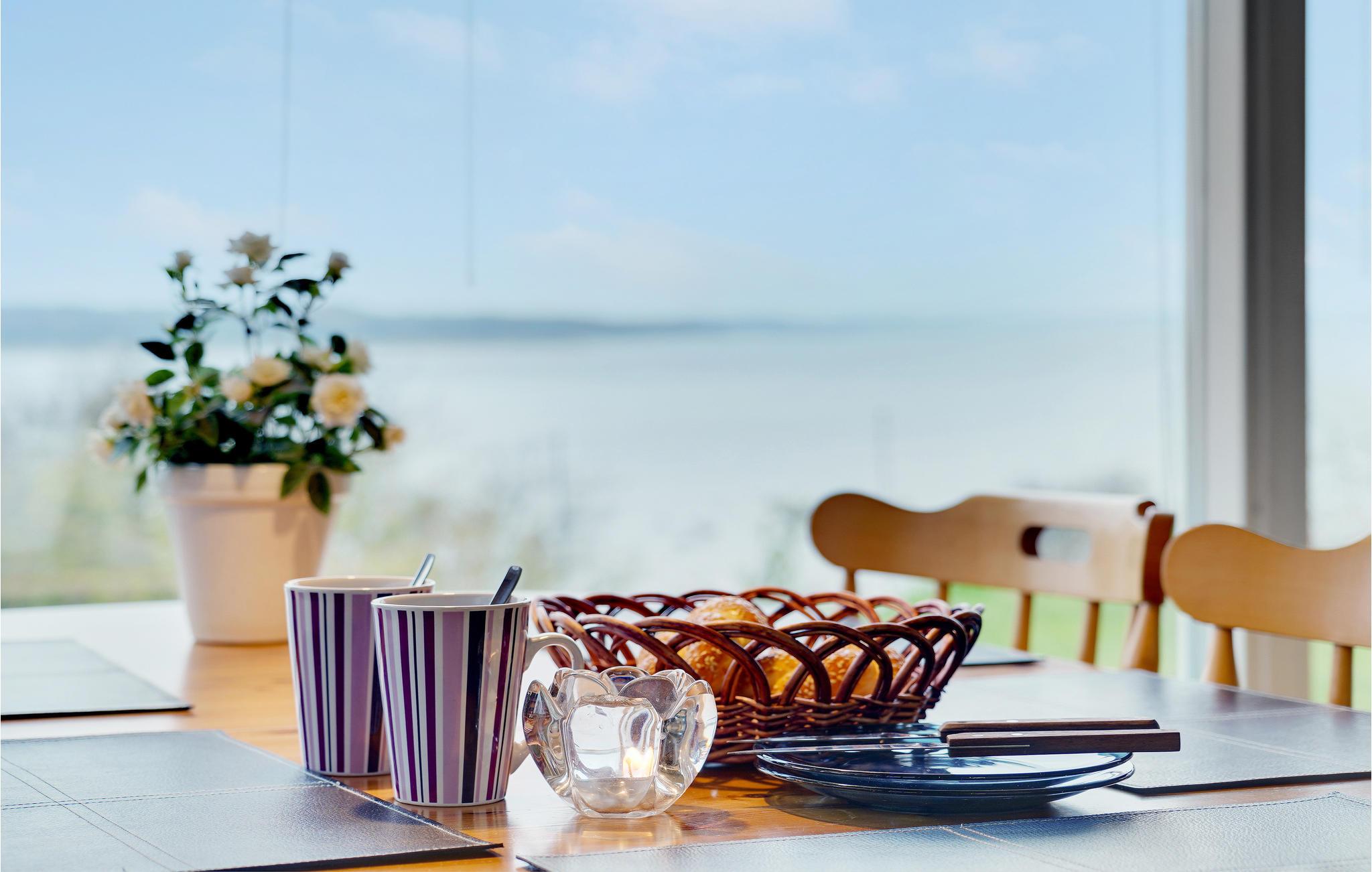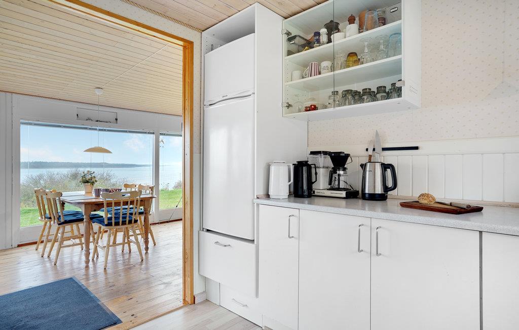 Ihr Ferienhaus bietet Ihnen einen erholsamen Urlaub in ruhiger Umgebung am Store Havelse Strand. Das Haus liegt in der ersten Reihe zum Wasser und begeistert mit einer wunderbaren Aussicht auf den Roskilde Fjord, die Sie vom Wohnzimmer oder der großzügigen Terrasse genießen können. Der gemütlich eingerichtete Wohnbereich bietet dank der großen Fensterfronten eine helle und freundliche Stimmung. Lehnen Sie sich auf dem Sofa zurück oder nehmen Sie am stilvollen Esstisch Platz und lassen Sie den Blick über das Wasser schweifen. Der Kaminofen sorgt dabei für eine behagliche Atmosphäre. Die offene Küche ist funktional eingerichtet und ideal, um Ihre gemeinsamen Mahlzeiten zuzubereiten.