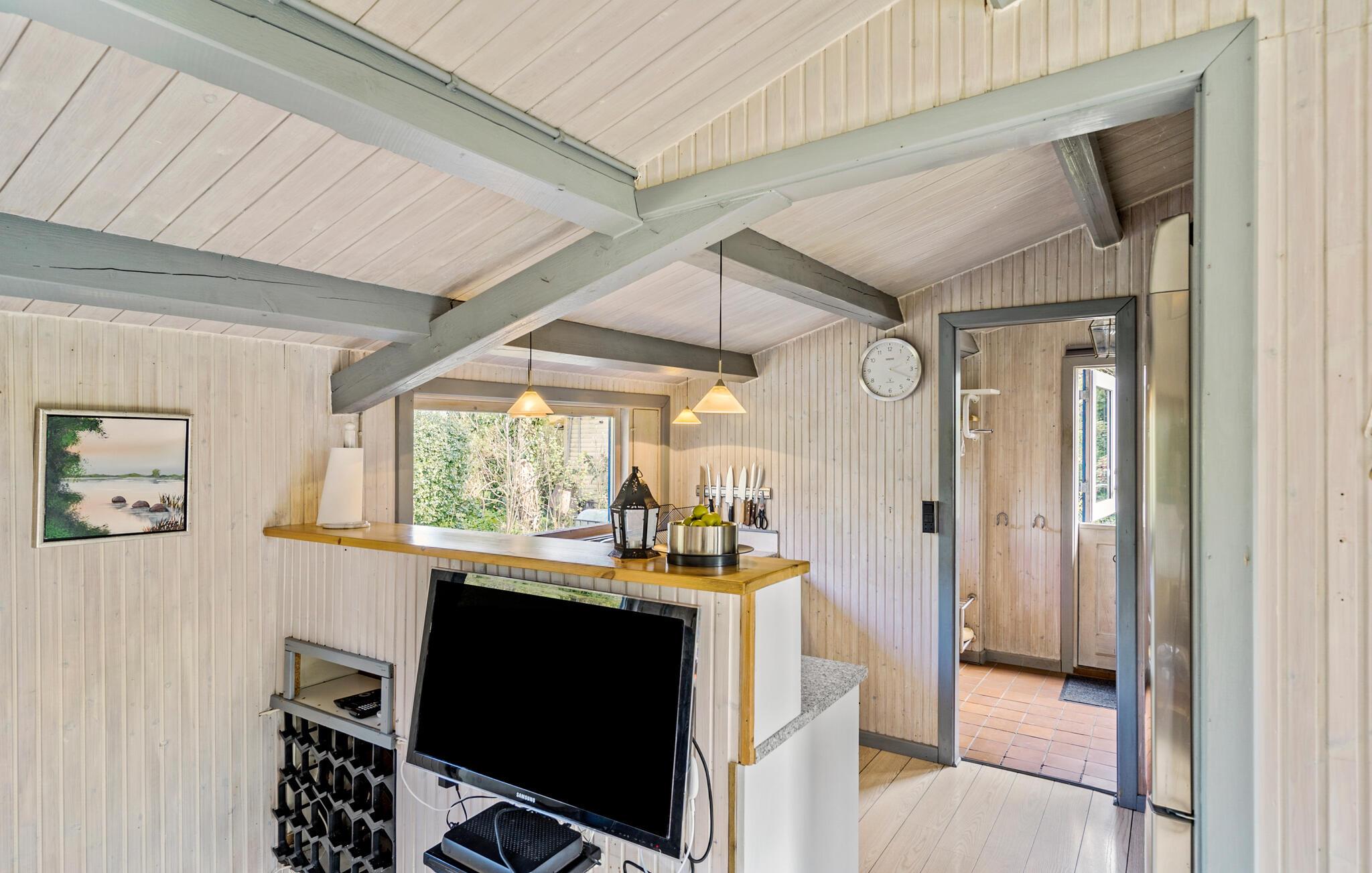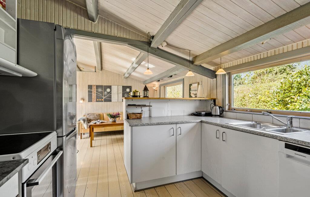 In der behaglichen Atmosphäre dieses Ferienhauses finden Sie eine charmante Mischung aus Komfort und Einfachheit, die wie geschaffen ist für einen familienfreundlichen Urlaub. Frühstücken Sie morgens gemeinsam am Esstisch. Die großen Fensterfronten lassen viel Licht herein und ermöglichen gleichzeitig einen schönen Ausblick auf den Garten. Die offene Küche bietet die Gelegenheit, gemeinsam Mahlzeiten zuzubereiten. Entfalten Sie Ihre Kochkünste hier im Laufe des Tages und nutzen Sie den angrenzen Wohnraum zum Entspannen beim gemütlichen Knistern des Kaminfeuers. Draußen erwartet Sie ein ruhiger, schöner Garten zu Freizeitaktivitäten. Entspannen Sie sich auf der Terrasse oder speisen Sie im Freien. Ihre Kinder haben hier viel Platz zum Spielen und Erkunden.