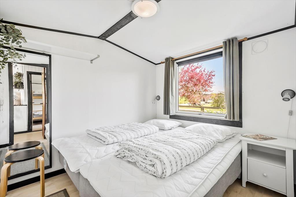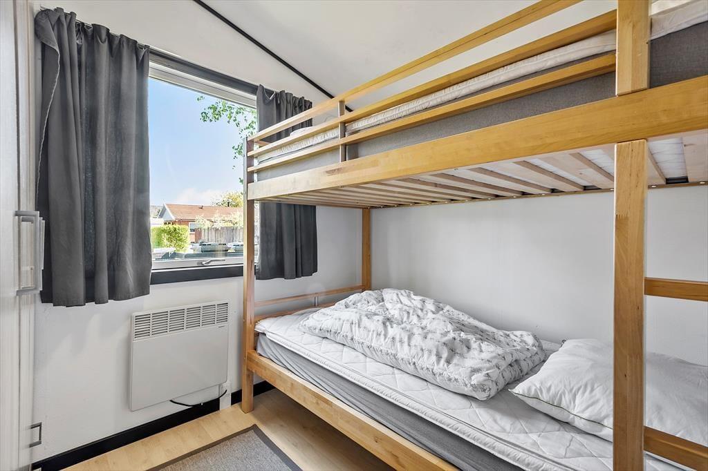 2 Schlafzimmer:2 Einzelbetten, 2 Etagenbett. Das Haus liegt ca. 300 m vom Strand entfernt, mit kleinem Spielplatz und Badebrücke (geeignet zum Kajakfahren).