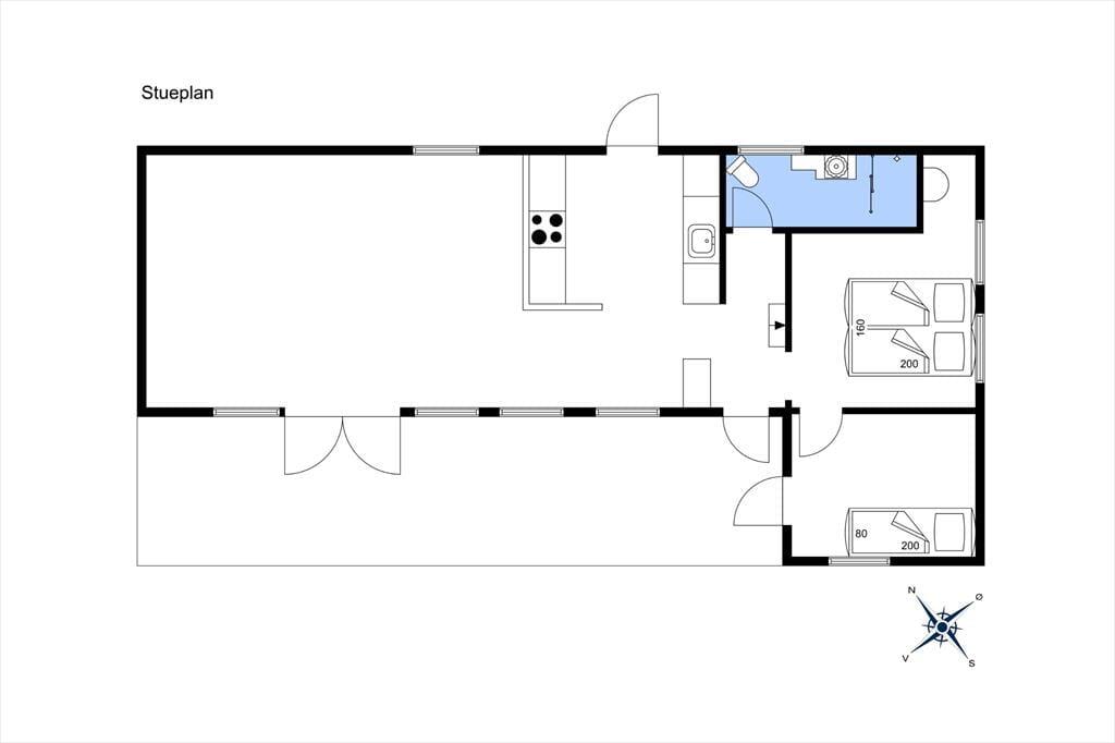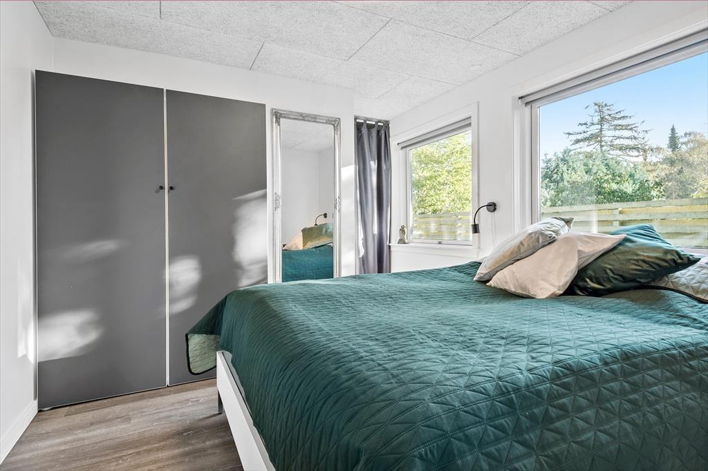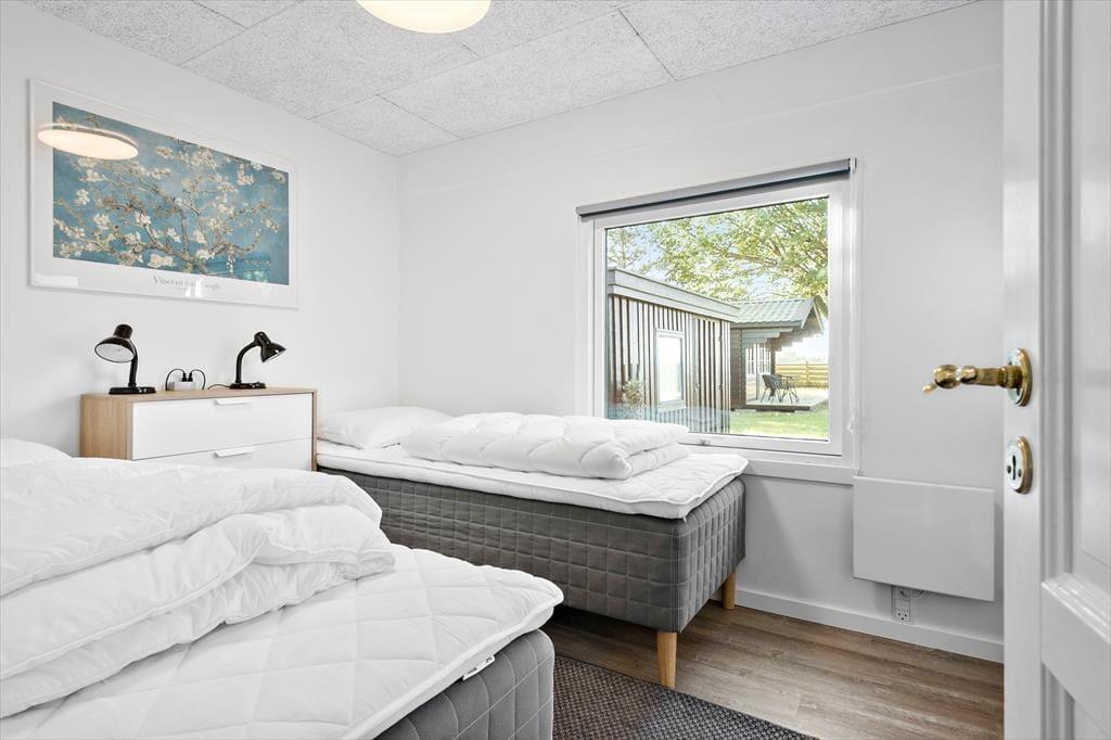Vom Eingangsbereich gelangen Sie in einen Schlafraum mit einem Doppelbett. An dieses Zimmer schließt wiederum ein zweiter Schlafraum mit zwei Betten. Letztgenannter Raum ist zusätzlich von außen zugänglich.