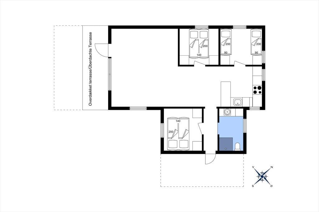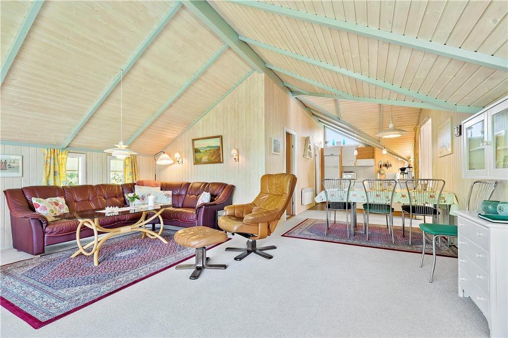 Das Wohnzimmer ist mit der offenen Küche kombiniert. Helle, moderne Küche mit Klinkerfußboden, Glaskeramikherd, Geschirrspüler, Mikrowelle und Kühl- Gefrierschrank. Gut eingerichtetes Wohnzimmer mit Ausgang zur Terrasse, großem Ecksofa, Sesseln, gutem Essplatz, Fernsehen mit Dänische und vier Deutsche Kanäle) und DVD. Badezimmer mit Klinkerfußboden, Fußbodenheizung, Duschnische. Und Waschmaschine. 3 Schlafzimmer, zwei mit Doppelbetten, und ein mit 1 Einzelbett und Etagenbett. Heizung des hauses erfolgt durch Wärmepumpe und elektrische Heizung.