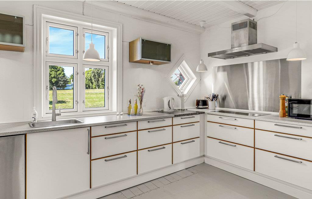 Willkommen in diesem geräumigen Ferienhaus mit dem Namen „Højbo“ - einem großen, hellen und geräumigen Haus in schöner, ländlicher Umgebung. Das Haus hat zwei Etagen und enthält u. A. ein schönes Esszimmer mit Holzofen und einem großen Essbereich, eine "Bibliothek" zum Lesen und Entspannen und ein Fernsehzimmer, in dem Sie gemütliche Filmabende starten können. In der großen, bestens ausgestatteten Küche mit z. B. zwei Backöfen ist es eine Freude, sich mit der Zubereitung köstlicher Mahlzeiten zu beschäftigen. Im schönen Gartenzimmer können Sie durch die großen Fenster den Blick auf die Natur und das Meer genießen. Im Badezimmer im Erdgeschoss befindet sich eine Badewanne. Das Haus verfügt über eine Luft/Wasser-Wärmepumpenanlage und Solarzellen, die Ihnen auf nachhaltige Art und Weise Energie liefern.