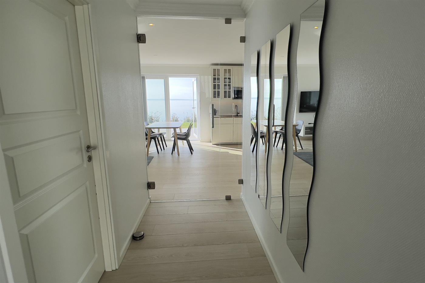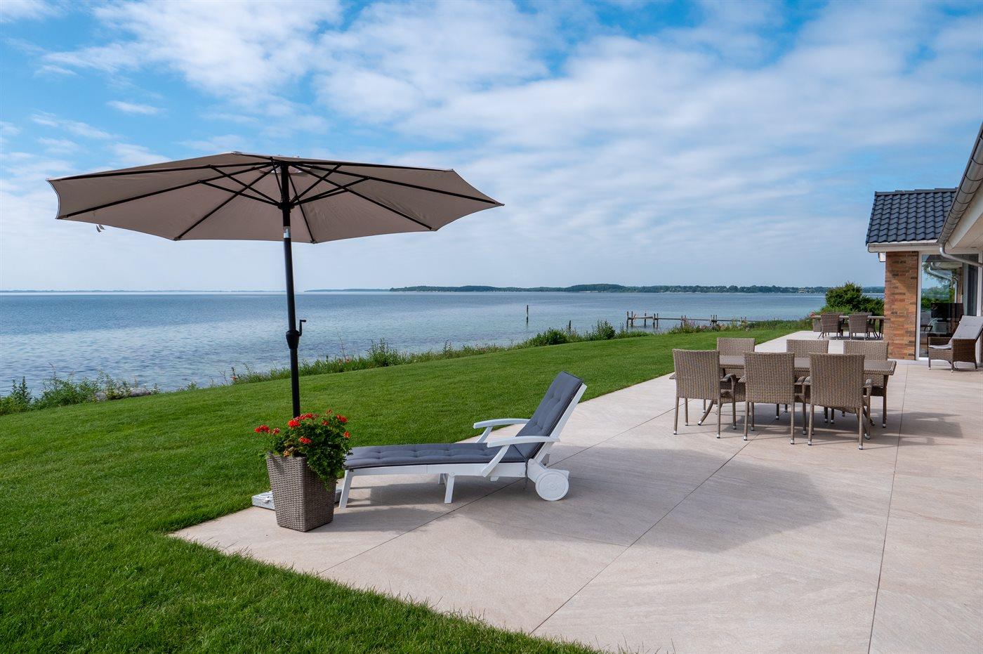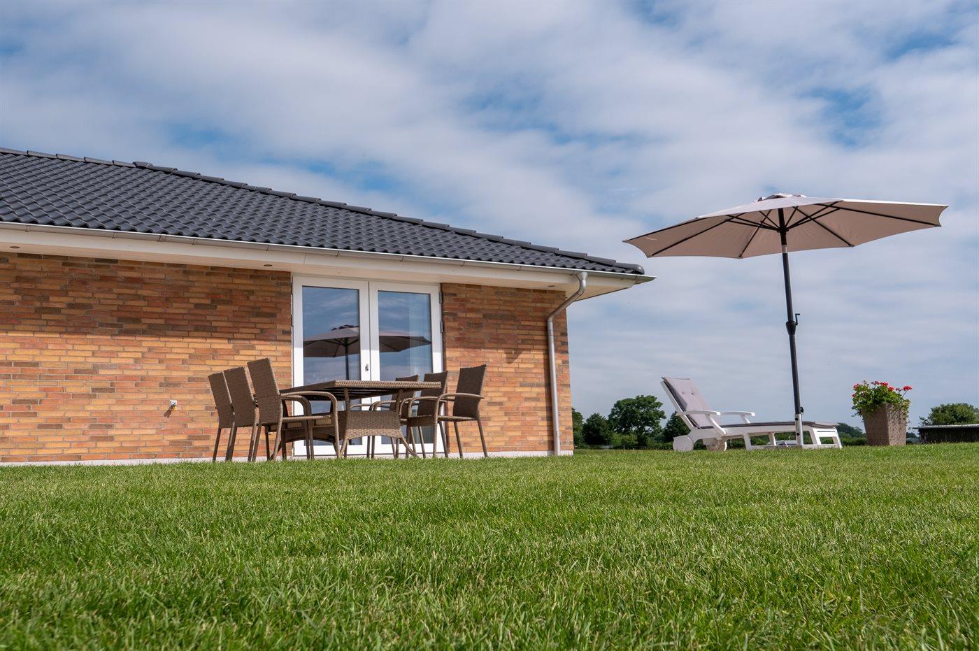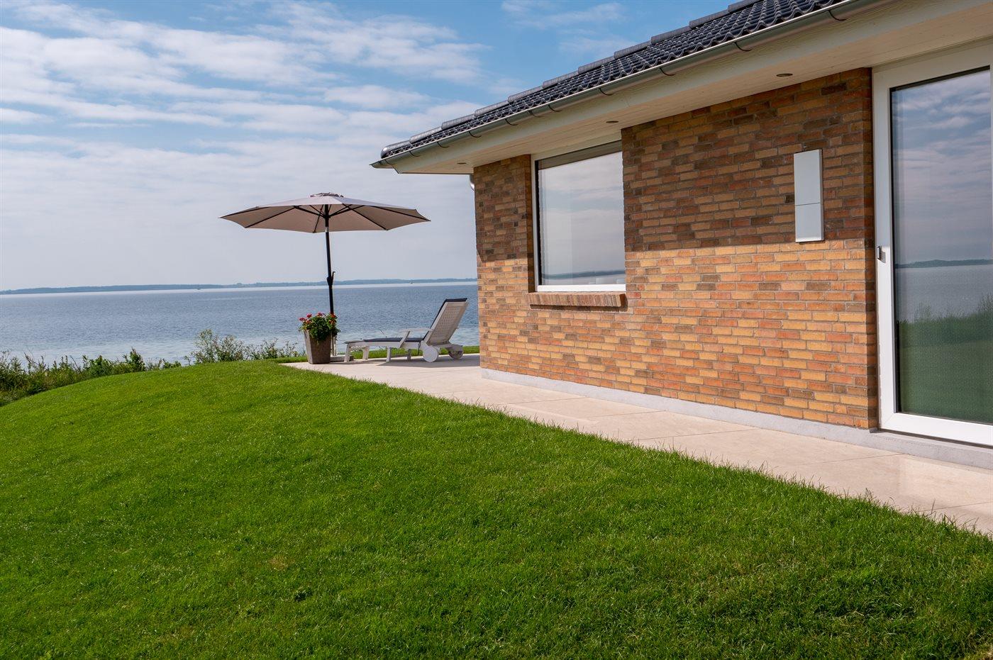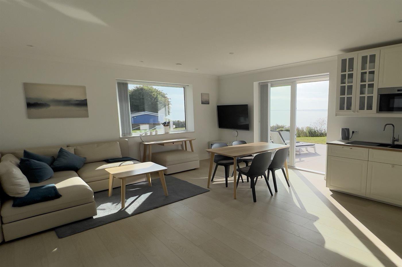 Helle Ferienwohnung mit Meerblick in Skårup Fyn, Terrasse und moderner Ausstattung.
