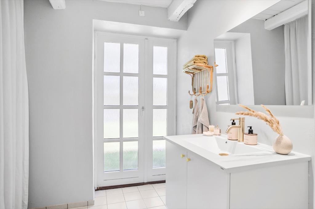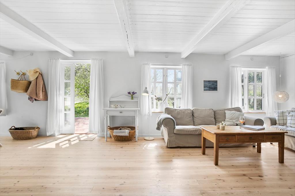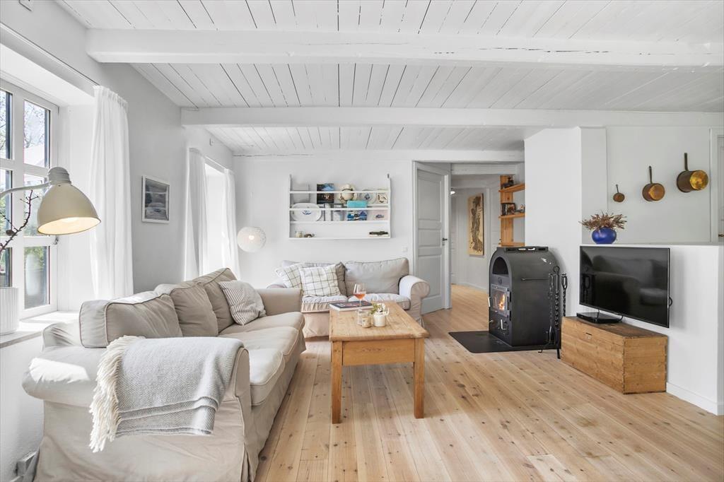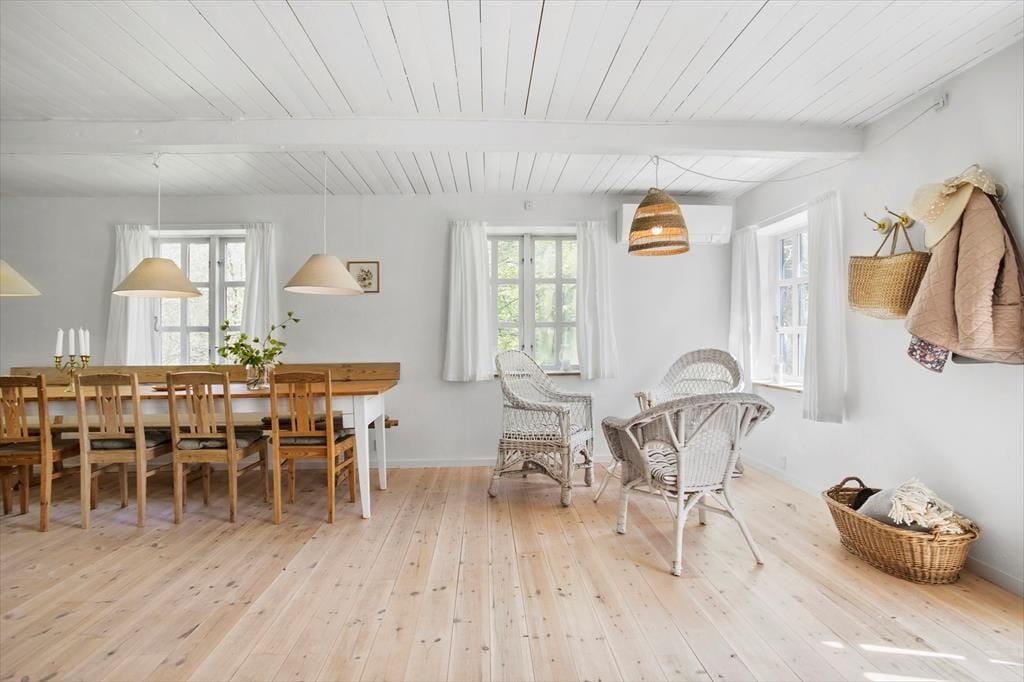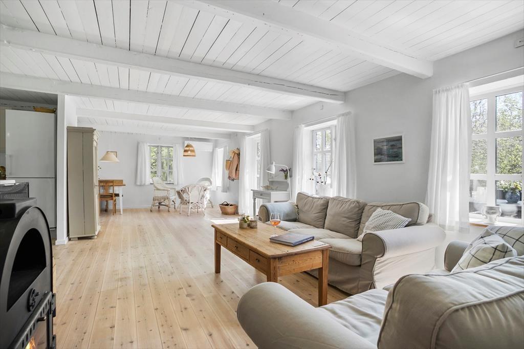Das 120 m² große reetgedeckte Haus ruht bereits seit mehr als einhundert Jahren inmitten der grünen Landschaft. Im Jahr 2012 wurde es liebevoll modernisiert, sodass es sich heute besonders einladend für vier Personen präsentiert. Der Wohnbereich ist durchgehend in hellen Farben gehalten. In mehreren Räumen erwarten Sie Wandfarben, die durch das nahegelegene legendäre Svinkløv Badehotel inspiriert wurden. Der antike Herd in der Küche ist nur eines von vielen Details, die an die Vergangenheit erinnern. Die moderne Küche bietet Ihnen hervorragende Arbeitsbedingungen. Sie ist offen mit dem großen, schönen Wohnraum verbunden. Der Wohnraum verwöhnt mit einem Kaminofen, einem Flachbild-TV und mehreren gemütlichen Aufenthaltsplätzen. Am langen Esstisch werden Sie viele gemeinsame Essen und gesellige Runden verbringen. Ein gutes Badezimmer und ein praktischer Hauswirtschaftsbereich sind ebenso vorhanden wie drei gute Schlafräume. Zwei der Schlafräume beinhalten je ein Doppelbett. Im dritten Raum steht Ihnen ein ausziehbares Bett für zwei Personen zur Verfügung.