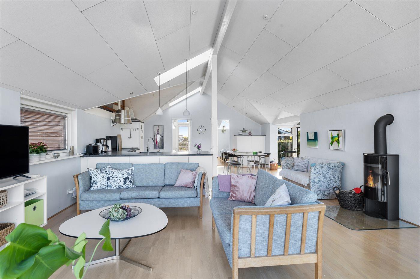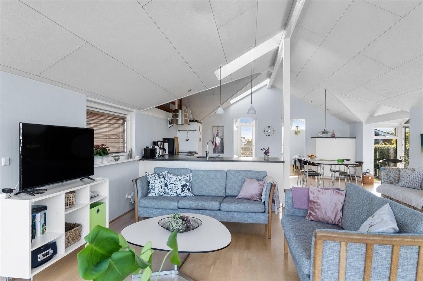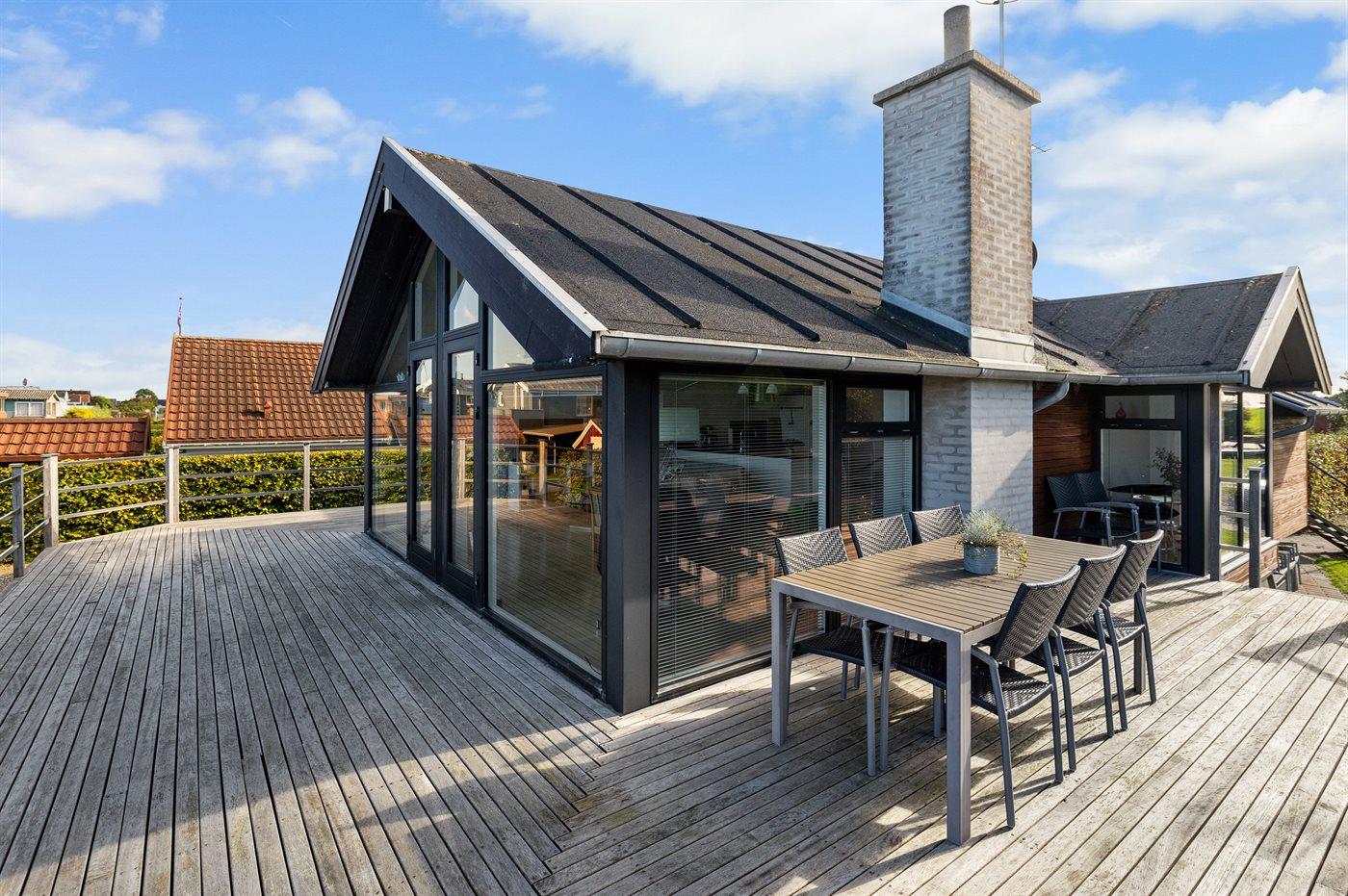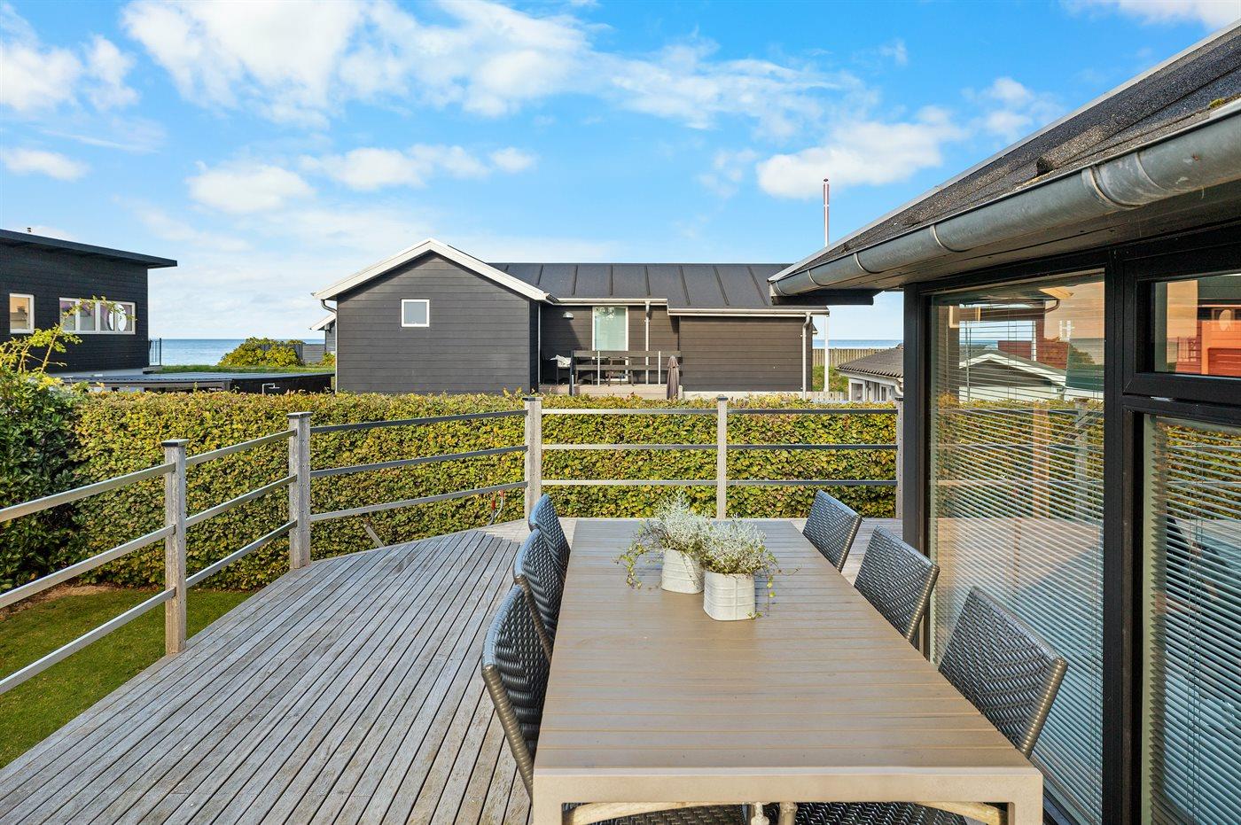 Schönes Ferienhaus, das hoch gelegen ist und somit Meerblick sowohl vom Haus als auch von der herrlichen Terrasse bietet. Es gibt Terrassen rund um das ganze Haus, sodass ihr sowohl die Abend- als auch die Morgensonne auf der Terrasse genießen könnt. Auf dem großen Grundstück gibt es viel Platz für Außenaktivitäten. Eigener Parkplatz auf dem Grundstück hinter dem Haus bei Kløvervænget. Beachtet bitte, dass zwei der Schlafplätze auf dem offenen Obergeschoss des Hauses sind.