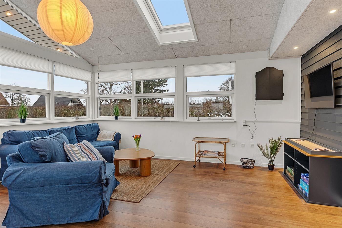 Herrliches Ferienhaus, das 2026 modernisiert ist. Das Haus ist gut eingerichtet und hat einen schönen Hobbyraum, der in Verbindung mit dem Wohnzimmer liegt. Von hier aus gelangst du auch auf die südlich ausgerichtete Terrasse.