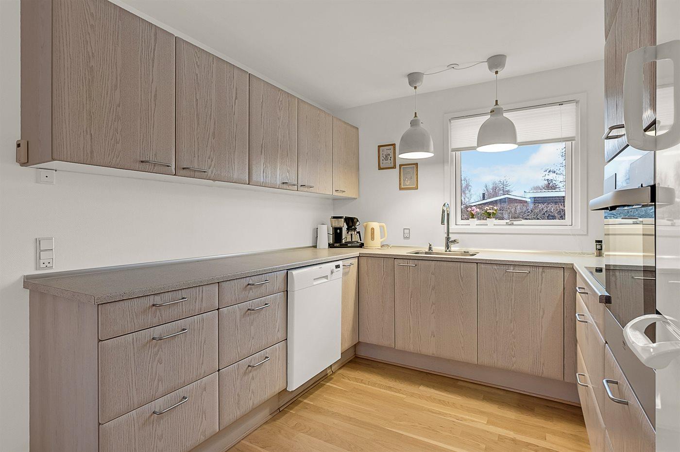 Die Küche ist mit Kühlschrank ausgestattet. Außerdem gibt es 4 Induktions-Kochzonen, Umluftofen, Mikrowelle sowie Geschirrspüler. Fußbodenheizung in der Küche.