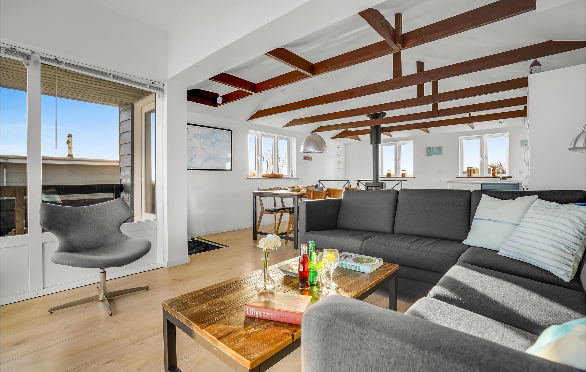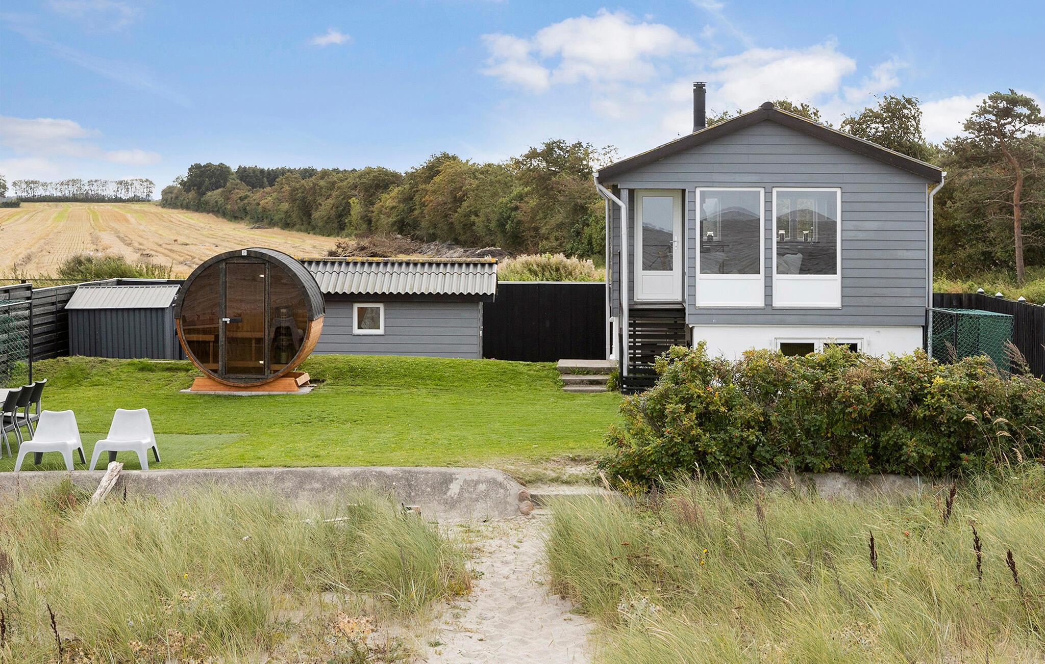 Das wunderschöne Haus ist der ideale Ort, um Ihren Urlaub am Meer zu verbringen. Das Haupthaus erstreckt sich über zwei Etagen, wobei Sie die obere als schönen Wohnraum mit großer Fensterfront nutzen. Hier genießen Sie vom Sofa, Esstisch und der Küche einen uneingeschränkten Ausblick auf den Strand und das Meer. Es wird der natürliche Treffpunkt Ihrer Familie, denn hier können Sie alles miteinander verbrinden, egal ob Sie kochen, essen, spielen oder entspannen. Ein weiteres Schlafzimmer finden Sie im Nebengebäude, sodass Sie auch Ihre Privatsphäre genießen können. Auch im Garten können Sie eine wundervolle Zeit verbringen. Genießen Sie Ihre Mahlzeiten im freien, entweder direkt an den Dünen oder etwas windgeschützt hinter dem Gebäude. Sie können aber auch an der Feuerstelle, in den Dünen, zusammenkommen, Marshmallows und Stockbrot über das Feuer halten und sich Schauergeschichten erzählen.