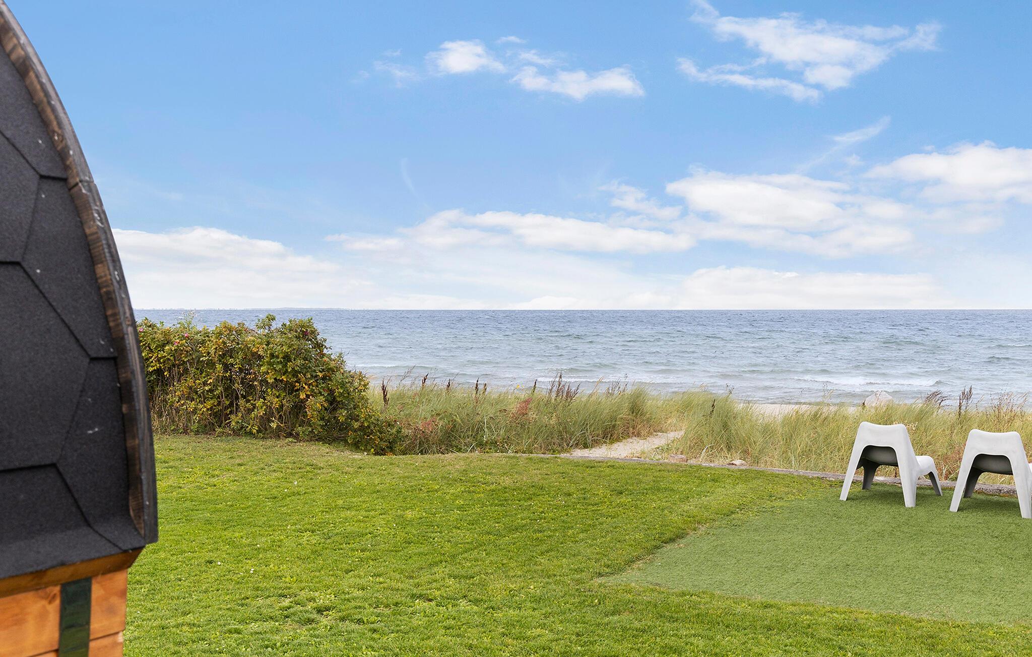 Strandhaus mit Meerblick am Tørresø Strand, ideal für entspannte Familienferien direkt am Wasser.