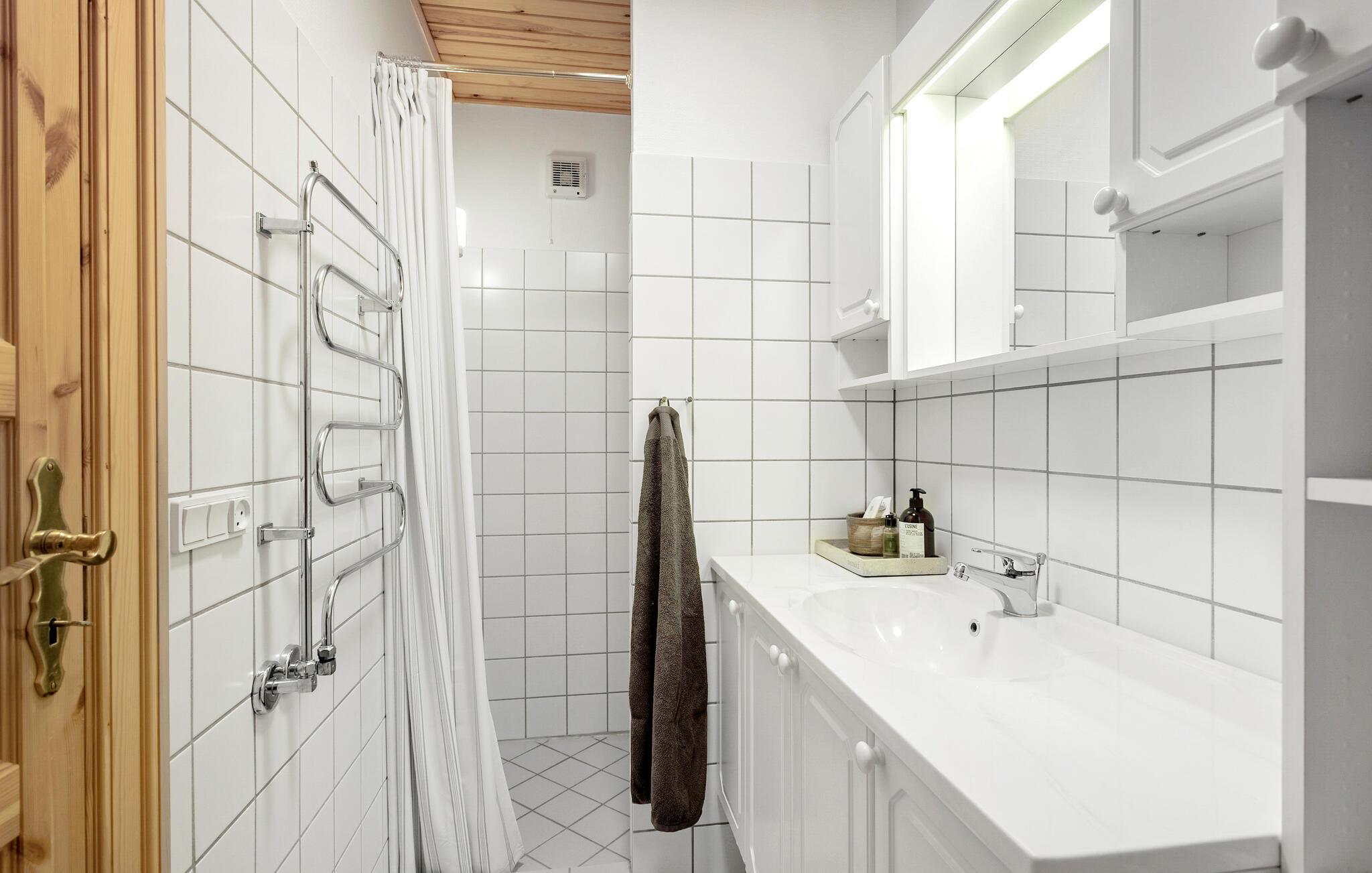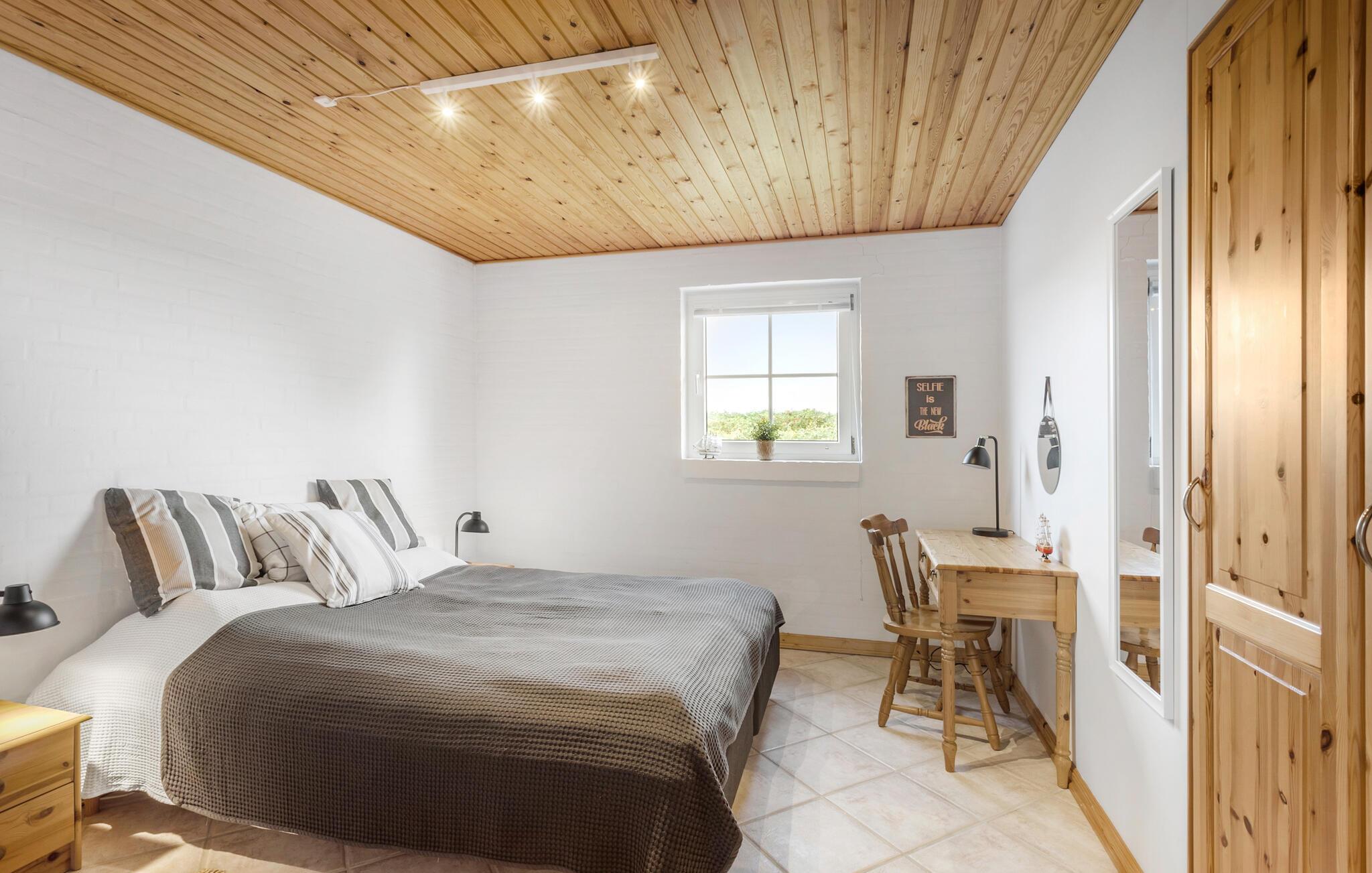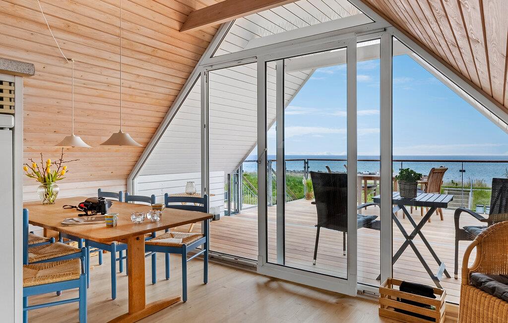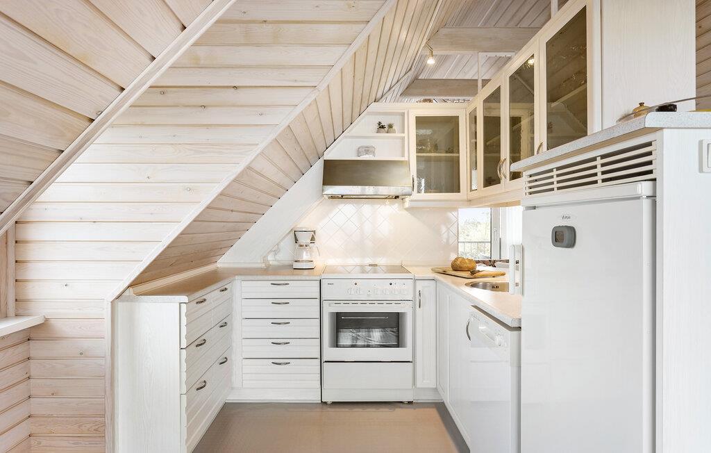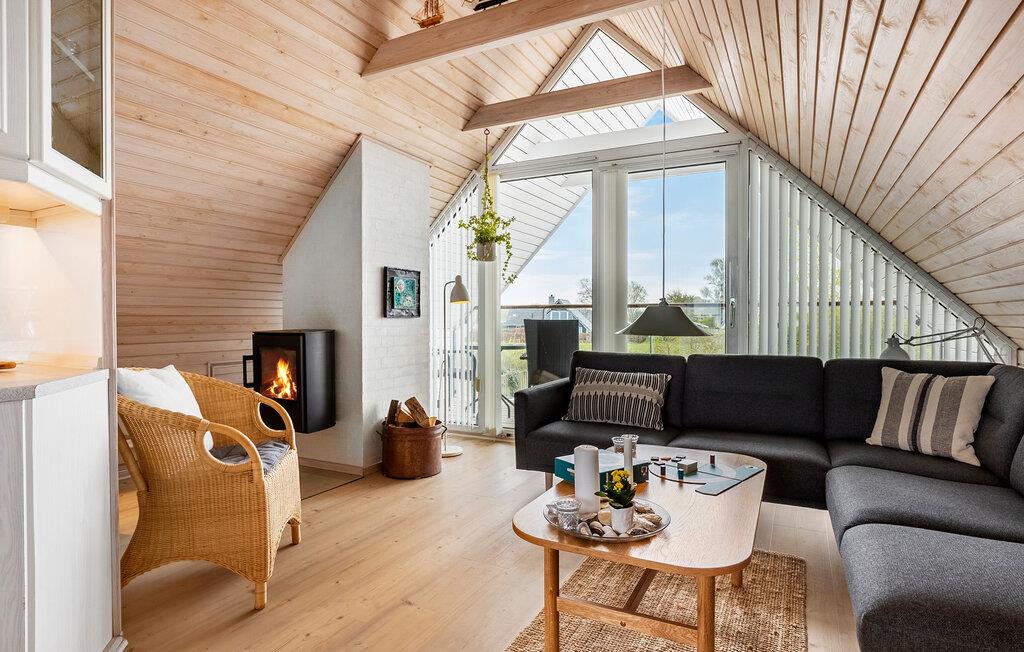Dieses einladende Haus im Norden der Insel Fünen bietet die ideale Umgebung für erholsame Tage und behagliche Abende. Nur wenige Schritte vom Strand von Tørresø entfernt, begeistert das Ferienhaus mit seiner ansehnlichen Architektur und der unmittelbaren Nähe zum Wasser. Schon beim Betreten werden Sie von einer warmen und gemütlichen Atmosphäre empfangen. Der Wohnbereich im Obergeschoss ist ein wahres Highlight. Die hohen Schrägdecken verleihen dem Haus nicht nur einen einzigartigen Charakter, sondern sorgen auch für eine angenehme, offene Atmosphäre. Von hier oben haben Sie gleichzeitig eine sagenhafte Aussicht auf das Meer.
