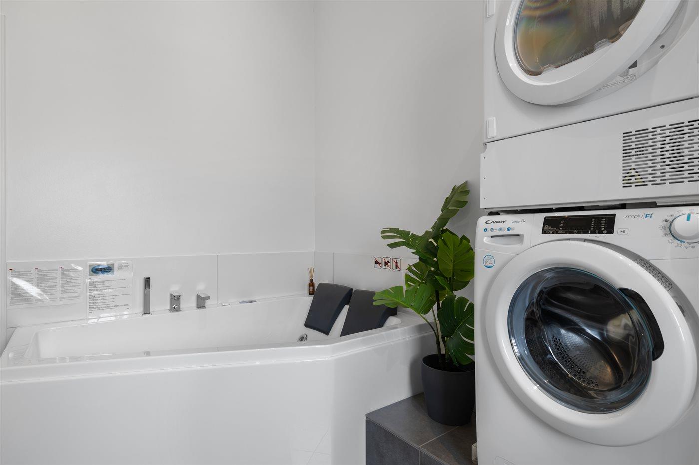 Die Küche ist mit Kühlschrank ausgestattet. Außerdem gibt es 4 Induktions-Kochzonen, Umluftofen sowie Geschirrspüler.