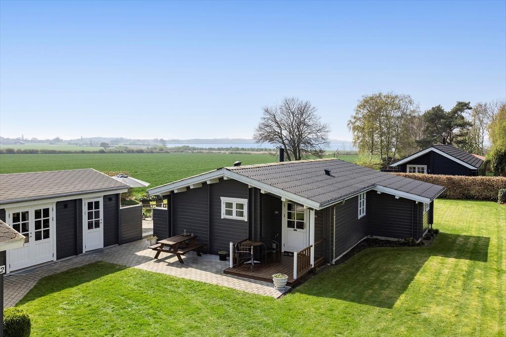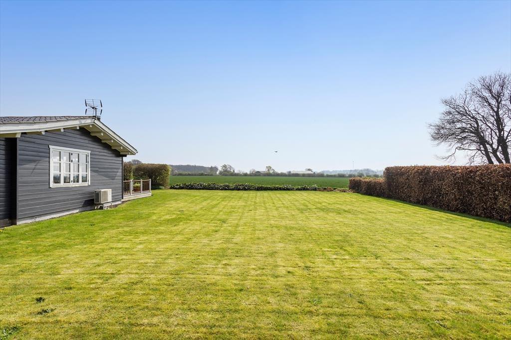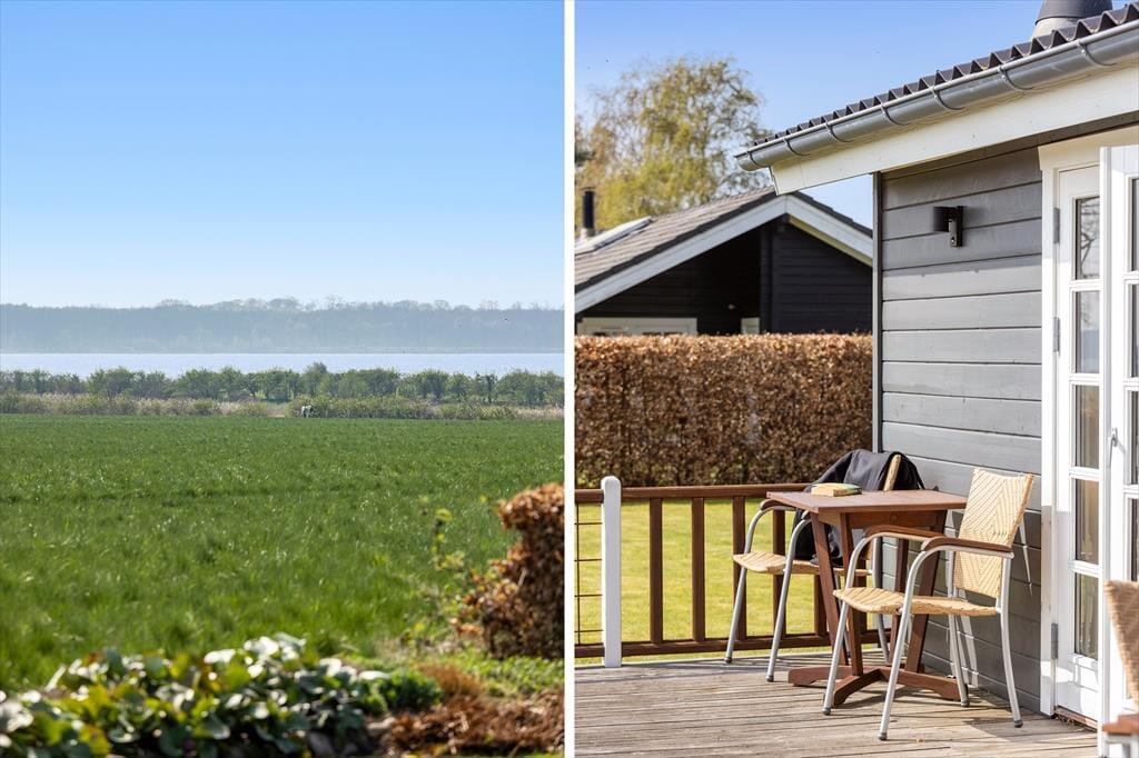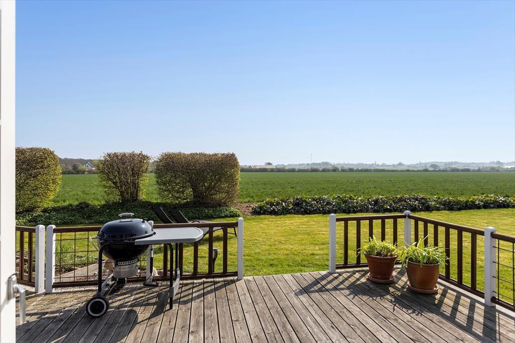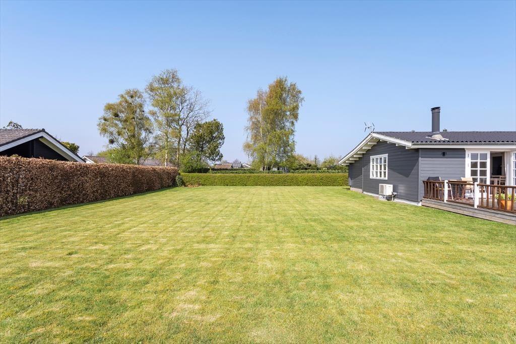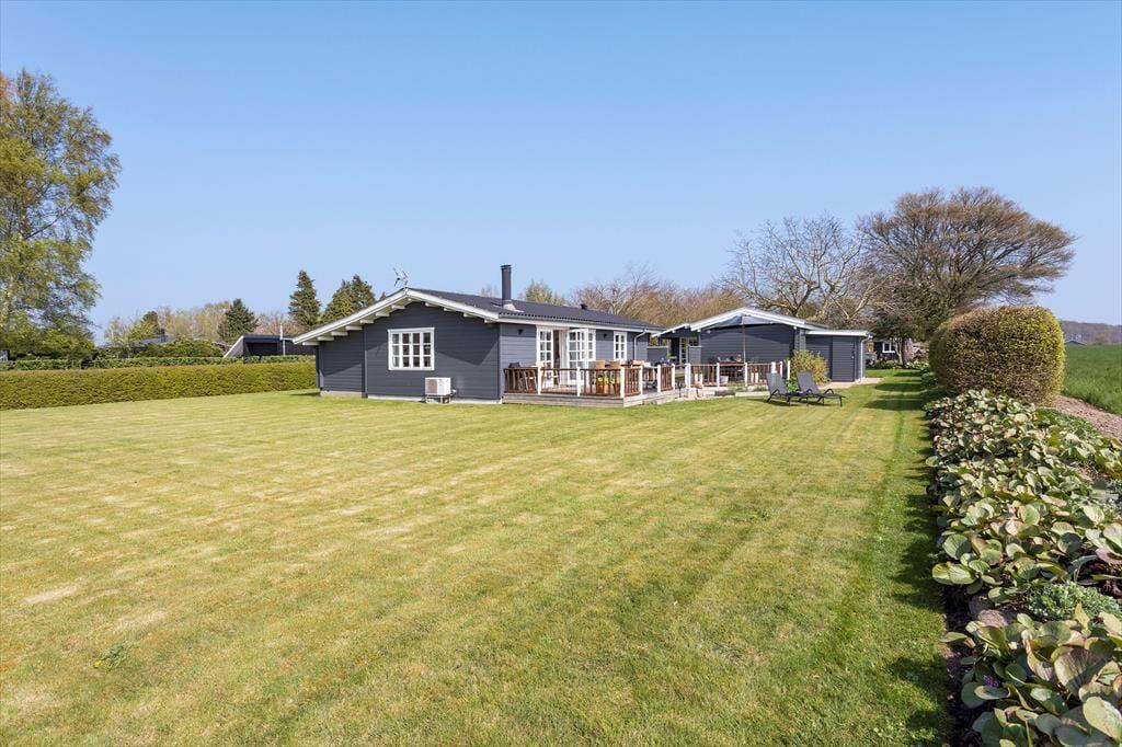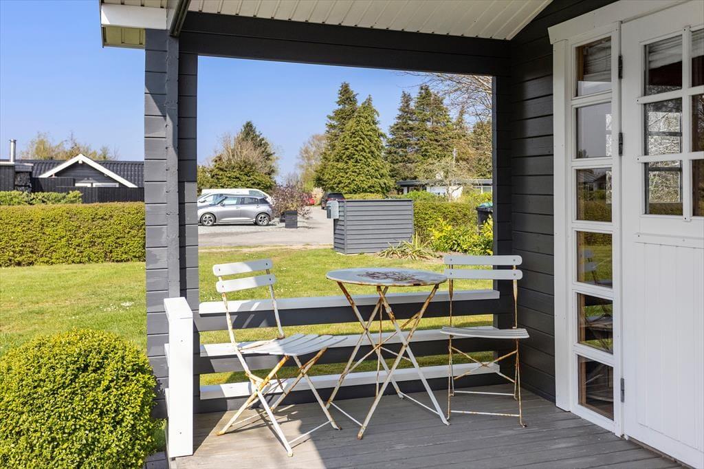 Der Außenbereich des Ferienhauses lädt zu langen Tagen in der Sonne und gemütlichen Stunden unter freiem Himmel ein. Die große Terrasse ist im Sommerhalbjahr das Herzstück des Hauses – hier können Sie den Morgenkaffee mit Blick auf die Lunkebugt genießen oder den Tag mit einem Glas Wein ausklingen lassen, während die Sonne im Meer versinkt. Die Terrasse bietet sowohl Sonne als auch Schatten und kann den ganzen Tag über genutzt werden. Der gepflegte Garten rund um das Haus bietet viel Platz zum Spielen für Kinder, während die Erwachsenen sich in einer Liege entspannen. Der nahegelegene Strand ist flach und kinderfreundlich – perfekt für Sandburgen, Planschspaß und entspannte Strandtage mit der ganzen Familie. Nach einem Bad im Meer können Sie sich auf der Terrasse erfrischen und die Sommerstimmung genießen.