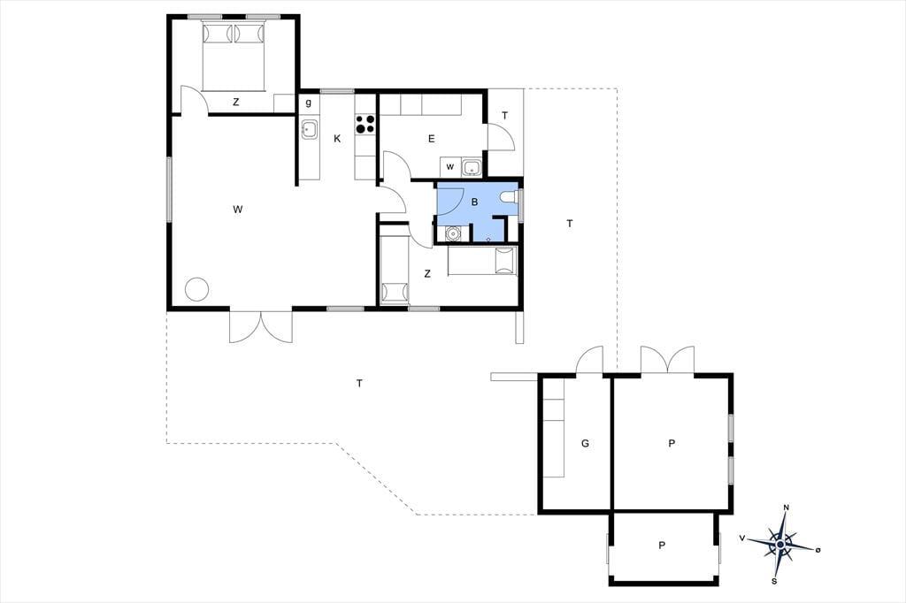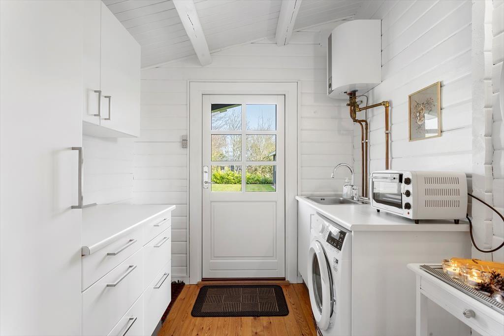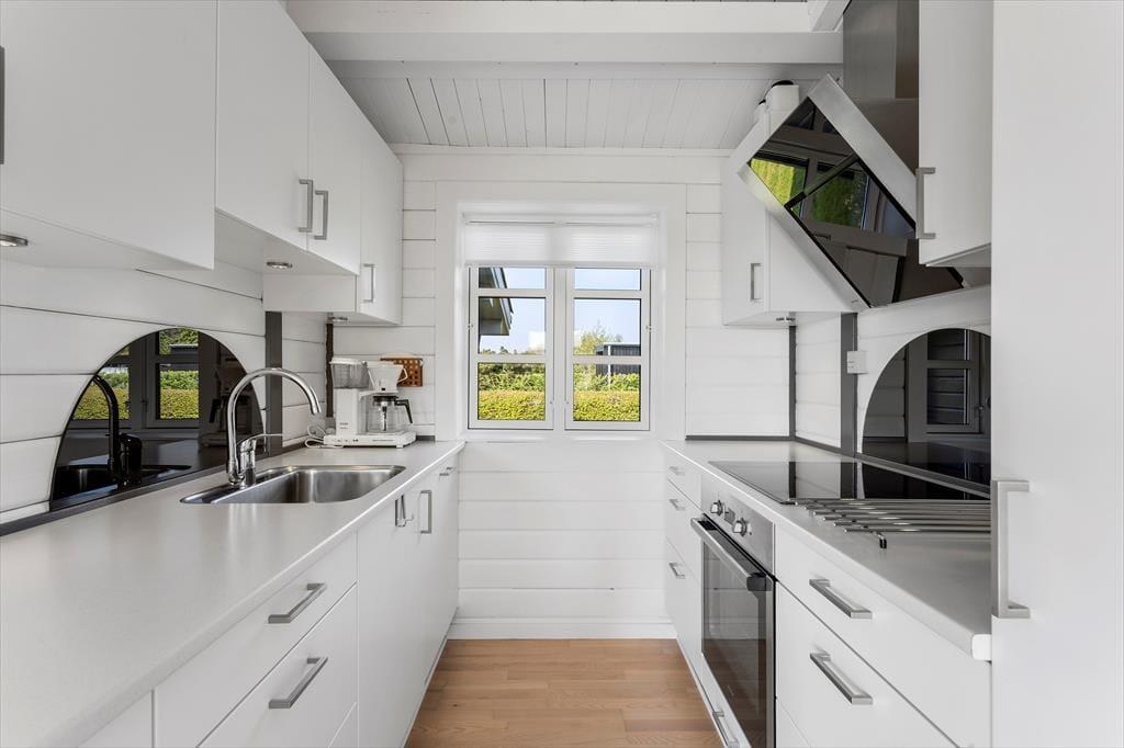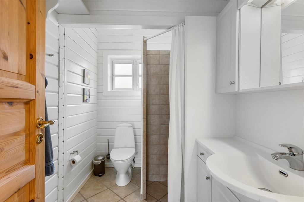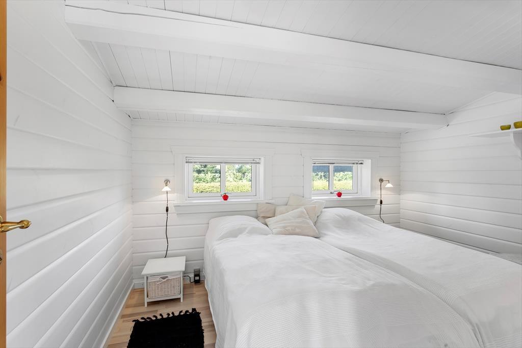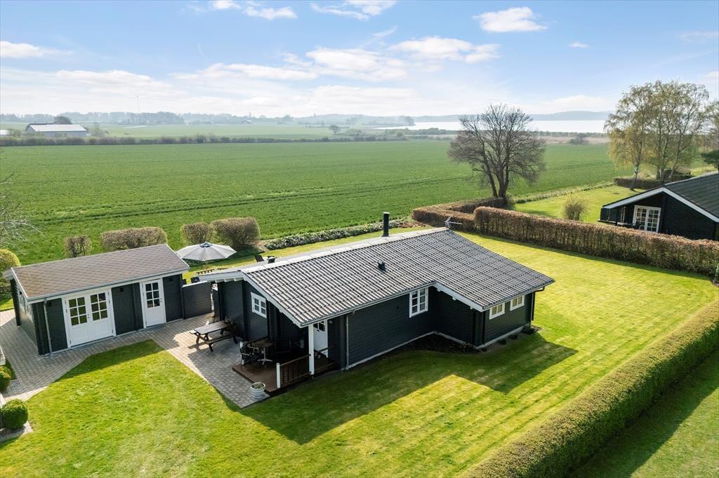 Der Außenbereich des Ferienhauses lädt zu langen Tagen in der Sonne und gemütlichen Stunden unter freiem Himmel ein. Die große Terrasse ist im Sommerhalbjahr das Herzstück des Hauses – hier können Sie den Morgenkaffee mit Blick auf die Lunkebugt genießen oder den Tag mit einem Glas Wein ausklingen lassen, während die Sonne im Meer versinkt. Die Terrasse bietet sowohl Sonne als auch Schatten und kann den ganzen Tag über genutzt werden. Der gepflegte Garten rund um das Haus bietet viel Platz zum Spielen für Kinder, während die Erwachsenen sich in einer Liege entspannen. Der nahegelegene Strand ist flach und kinderfreundlich – perfekt für Sandburgen, Planschspaß und entspannte Strandtage mit der ganzen Familie. Nach einem Bad im Meer können Sie sich auf der Terrasse erfrischen und die Sommerstimmung genießen.