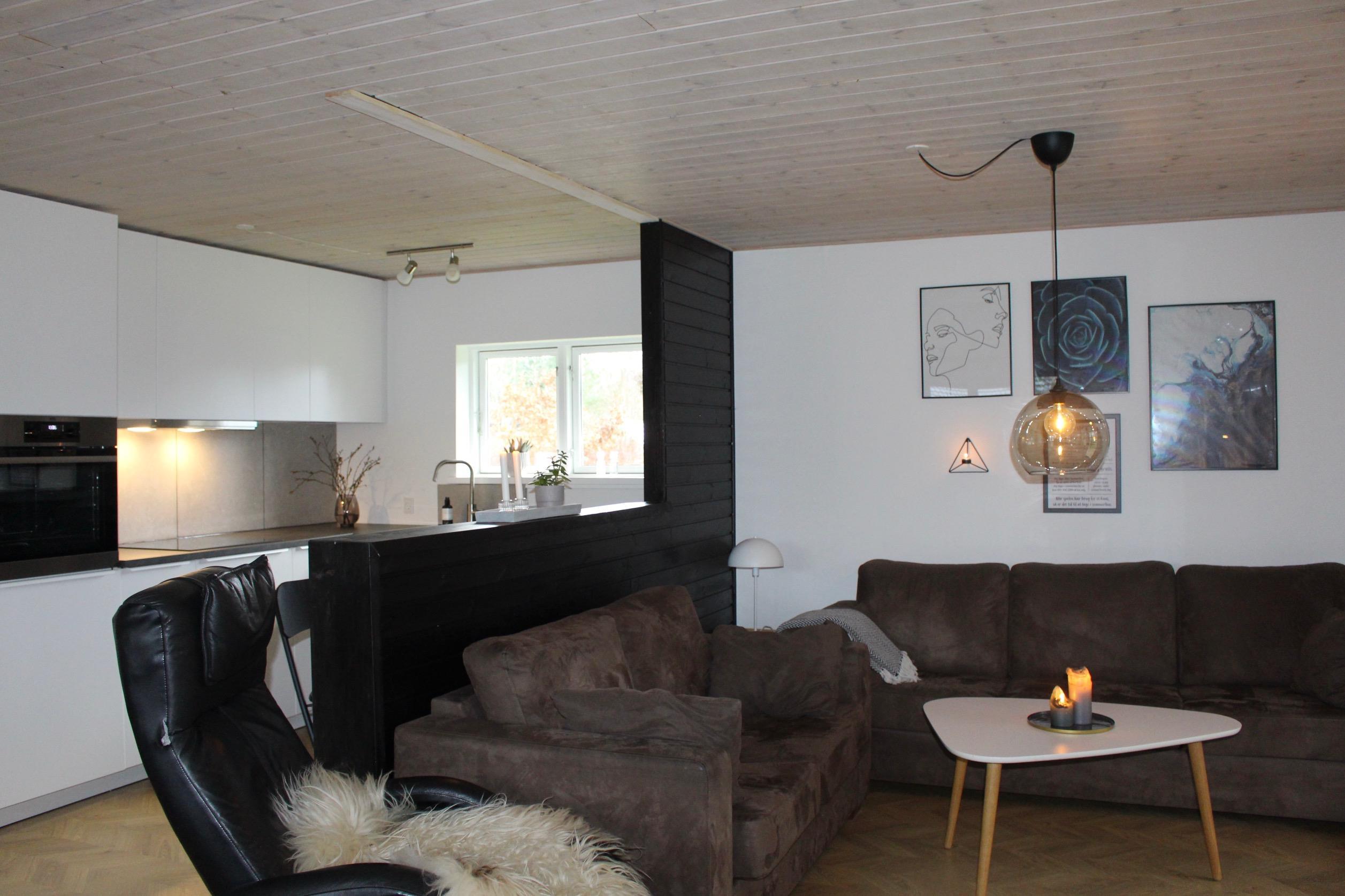 Das Haus hat ein großes Badezimmer mit Waschmaschine, eine Küche mit Geschirrspüler in offener Verbindung zum Wohnzimmer mit Holzofen und einen gut verteilten Flur mit 3 Schlafzimmern.