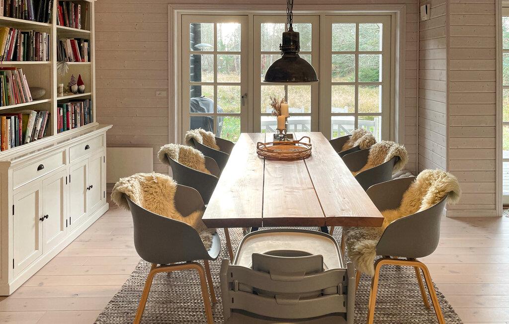 Dieses geräumige und geschmackvoll eingerichtete Ferienhaus begrüßt Sie mit purer Wohlfühlatmosphäre und bietet Ihnen eine behagliche Basis für erholsame Tage mit Ihren Liebsten. Planen Sie Ihre Unternehmungen bei harmonischen Mahlzeiten im einladenden Essbereich, schmökern Sie in einem guten Buch und machen Sie es sich nach einem erlebnisreichen Tag mit einem Film oder einem Brettspiel auf dem Sofa gemütlich, während der Kaminofen für wohlige Wärme sorgt.