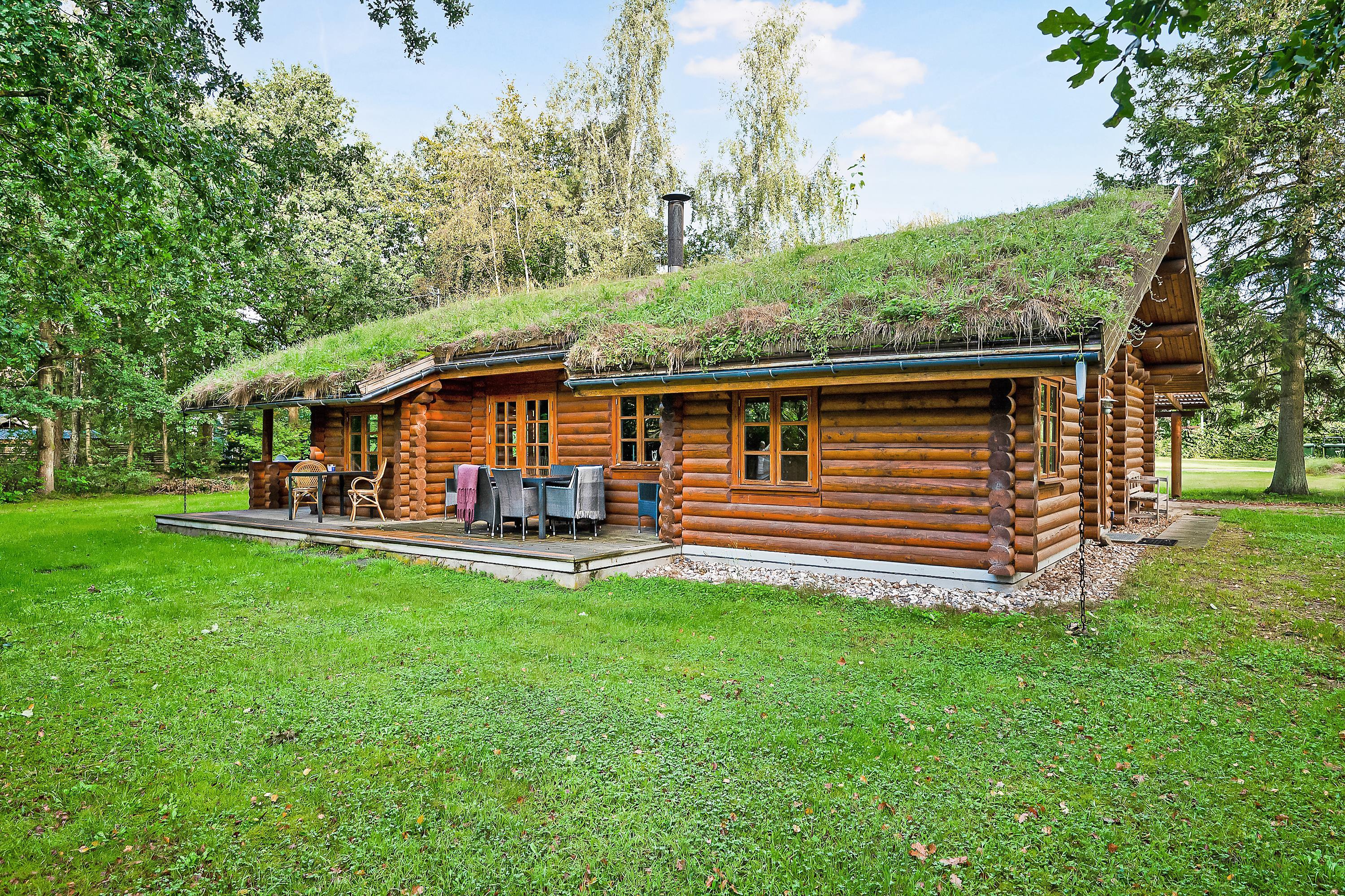 Gemütliches Blockhaus in Rønde mit Sauna, großem Garten und Nähe zu Natur und Freizeitparks.