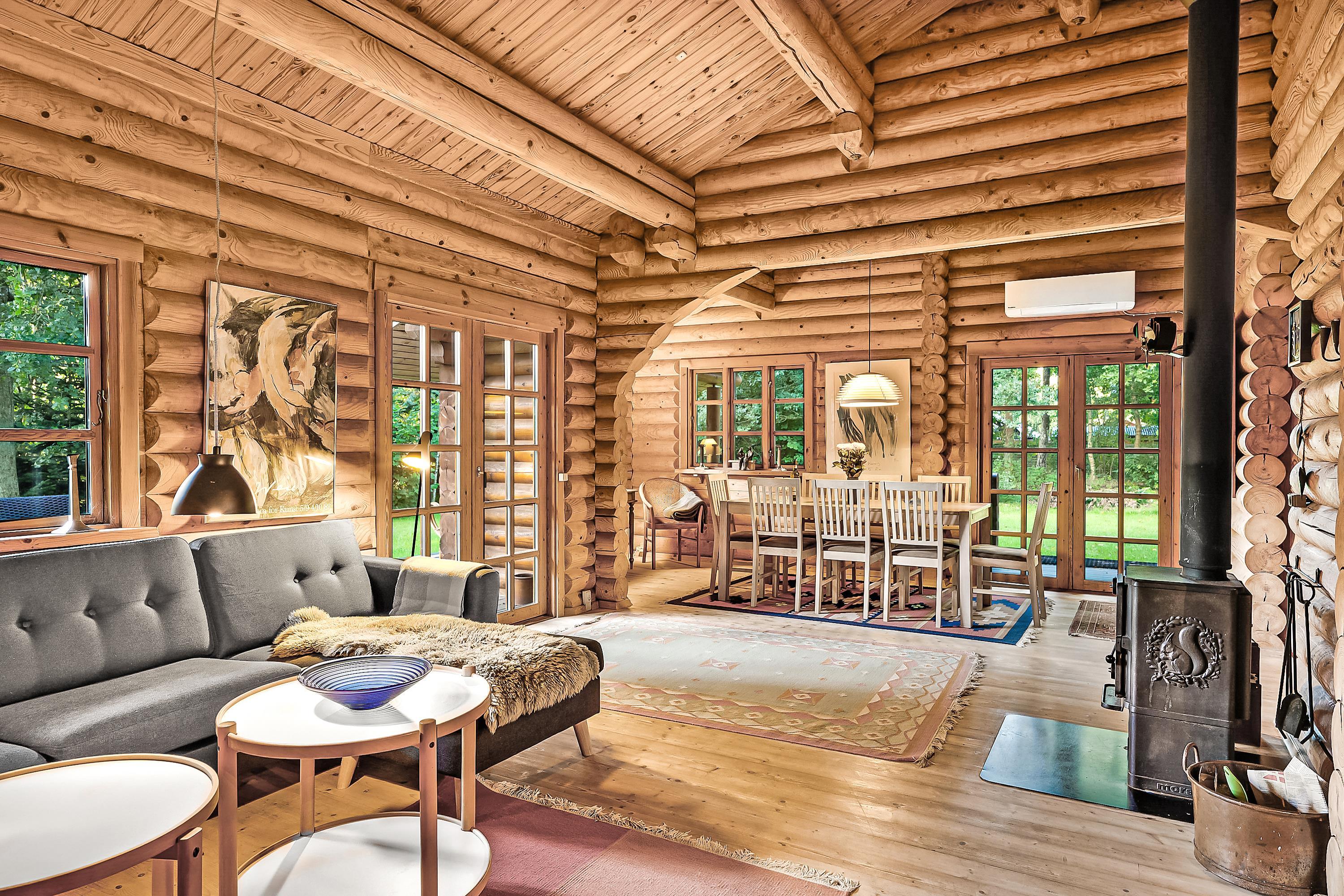 Auf einem schönen Naturgrundstück in bewaldeter Umgebung liegt dieses schöne Ferienhaus im Blockhausstil mit einer großen Terrasse mit Gartenmöbeln und Grill. Vielfältige Möglichkeiten für Fahrradtouren auf den kleinen Wegen zur einzigen Rundkirche Jütlands in Thorsager, besuchen Sie Gl. Estrup und Djurs Sommerland oder fahren Sie via Rønde nach Følle Strand oder Mols Berge. Aarhus und Randers sind auch nur eine halbe Stunde Autofahrt entfernt. Gemütliches Wohnzimmer mit Holzofen, TV mit SAT-Anlage (digital), DVD und Stereoanlage mit CD. Schöne Küche mit Ceranfeld, Kühl-Gefrierkombination, Mikrowelle und Geschirrspüler. Badezimmer mit Dusche, Fußbodenheizung, Sauna, Waschmaschine und Trockner. Die Schlafplätze verteilen sich auf 3 Schlafzimmer, alle mit Doppelbett sowie 4 Schlafplätze auf dem Hängeboden. Für die kleinen Feriengäste finden Sie Kinderbett undKinderhochstuhl. Wärmepumpe mit Airconditionfunktion. Carport. WLAN.
