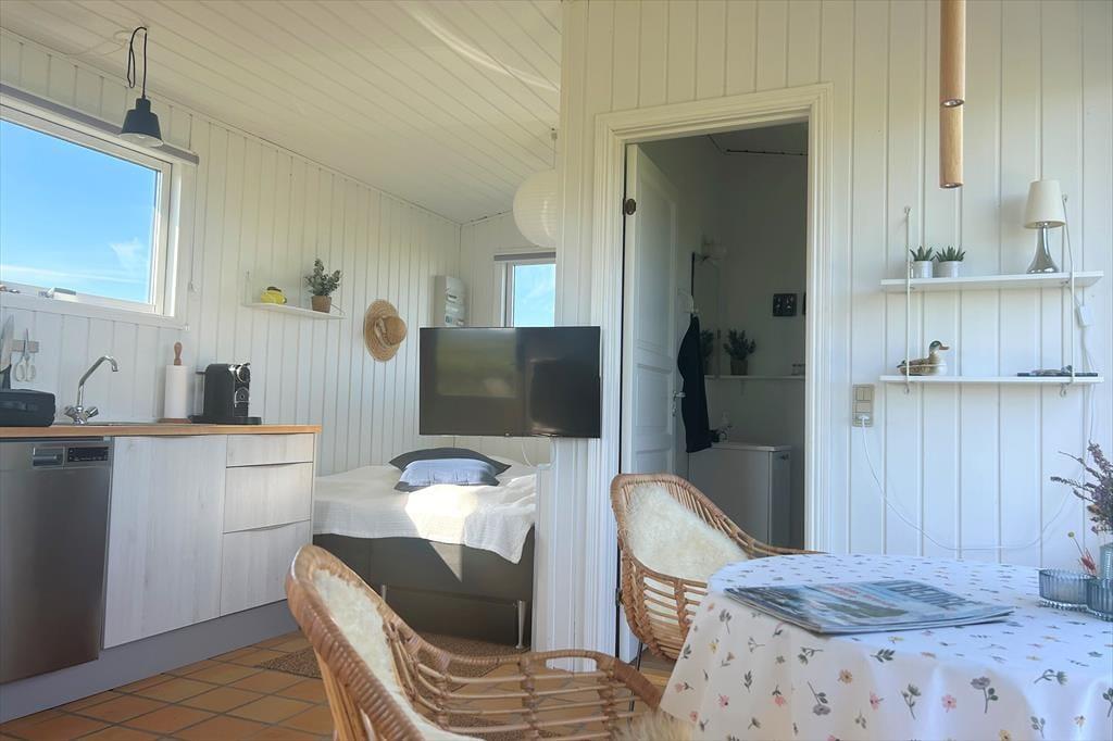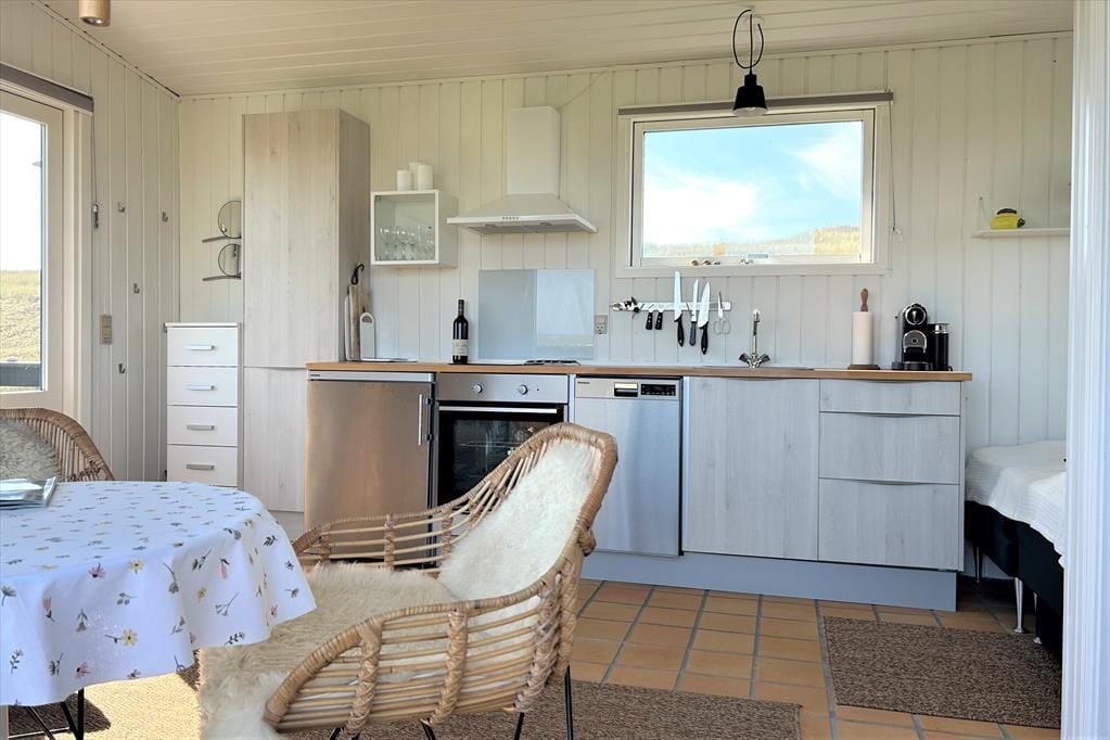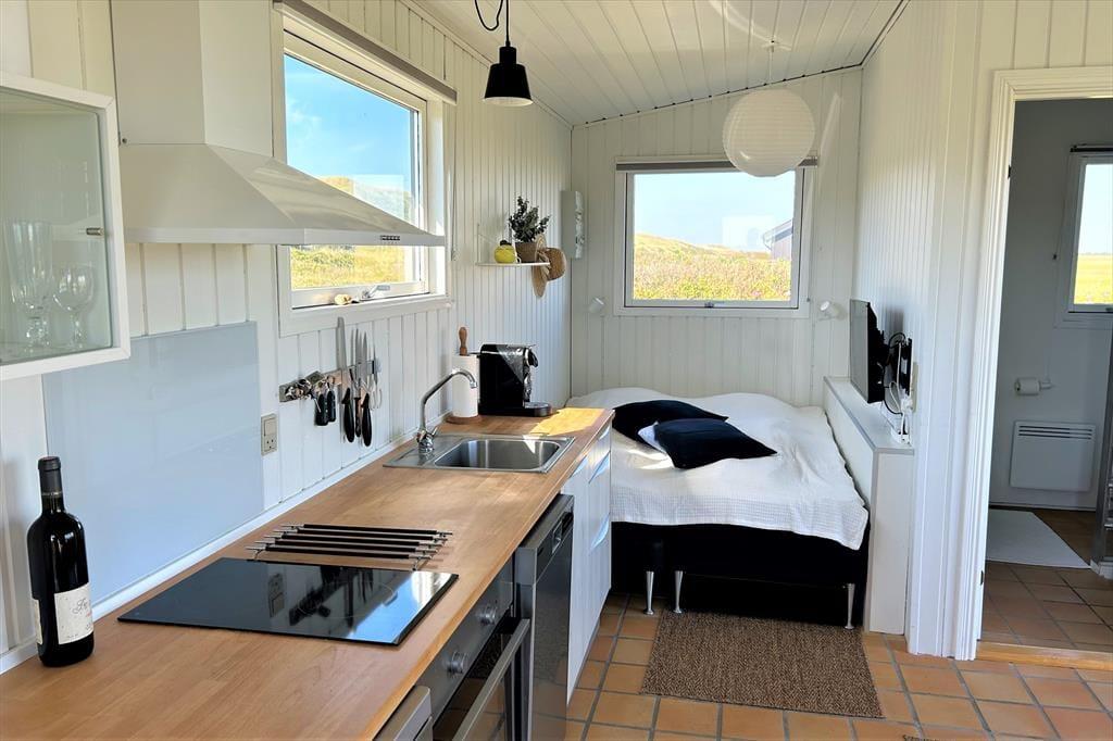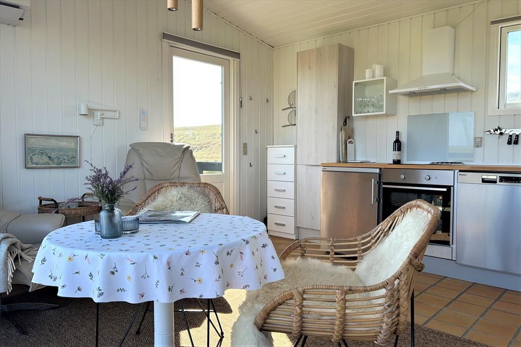 Du träumst von einem Urlaub im Zeichen von Ruhe und vielen entspannten Stunden mit deiner besseren Hälfte? Mit atemberaubender Natur direkt vor der Tür? Dann ist dieses bezaubernde kleine Ferienhaus mit einer Wohnfläche von 26 m² eine hervorragende Wahl! Der Wohnraum eröffnet eine prachtvolle Aussicht über die Fjordwiesen und den Nissum Fjord - ein wahres Paradies für Naturliebhaber. Von hier aus kannst du sehr gut die artenreiche Vogelwelt beobachten und erblickst mit ein wenig Glück sogar Hirsche, Rehe und Hasen, die sich häufig auf den Fjordwiesen tummeln. Während du mit deinem Herzensmenschen vor den großen Wohnraumfenstern oder auf der Terrasse in aller Ruhe frühstückst, erlebst du einen mehr als hübschen Sonnenaufgang am Horizont. Allabendlich könnt ihr zusammen über die Dünen an den nur 100 Meter entfernten Sandstrand schlendern und dort den Sonnenuntergang über der faszinierenden Nordsee bestaunen - ein unvergesslicher Anblick, der sich förmlich in das Gedächtnis brennt. Bei deinen Urlaub in diesem reizenden Ferienhaus spürst du vom ersten Augenblick, wie sich eine wunderbare Ruhe in dir ausbreitet und all deine Sinne angesprochen werden - ein perfektes Plätzchen für pure Erholung und Naturgenuss.