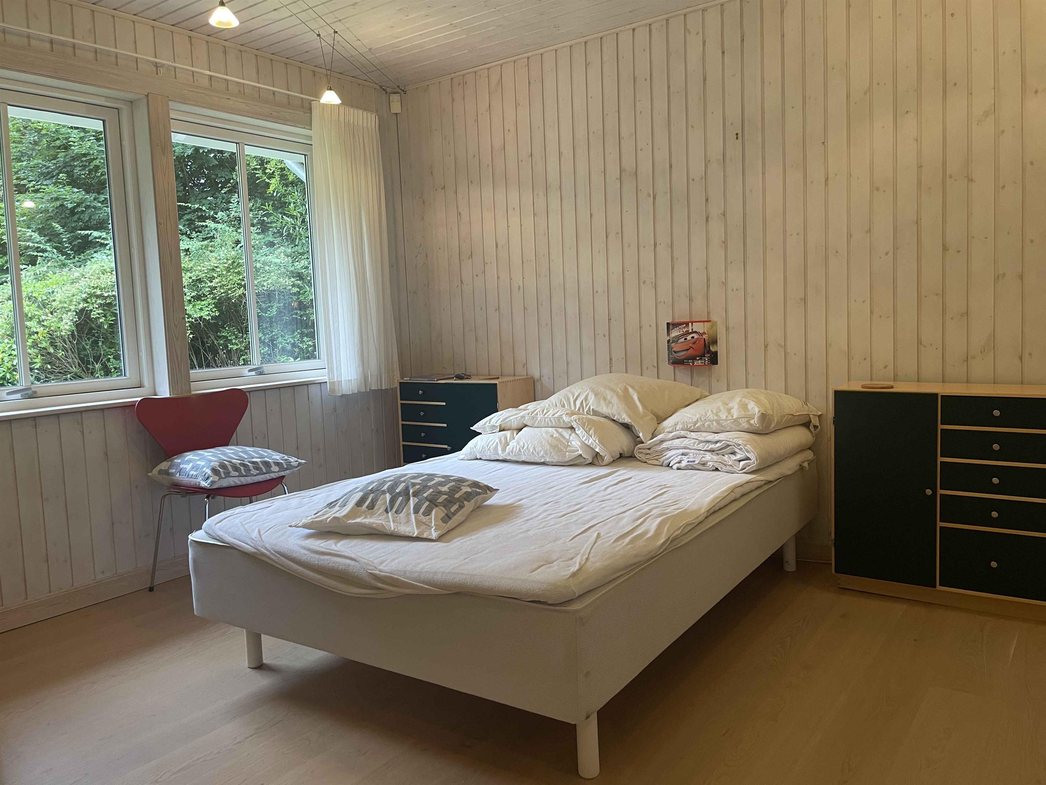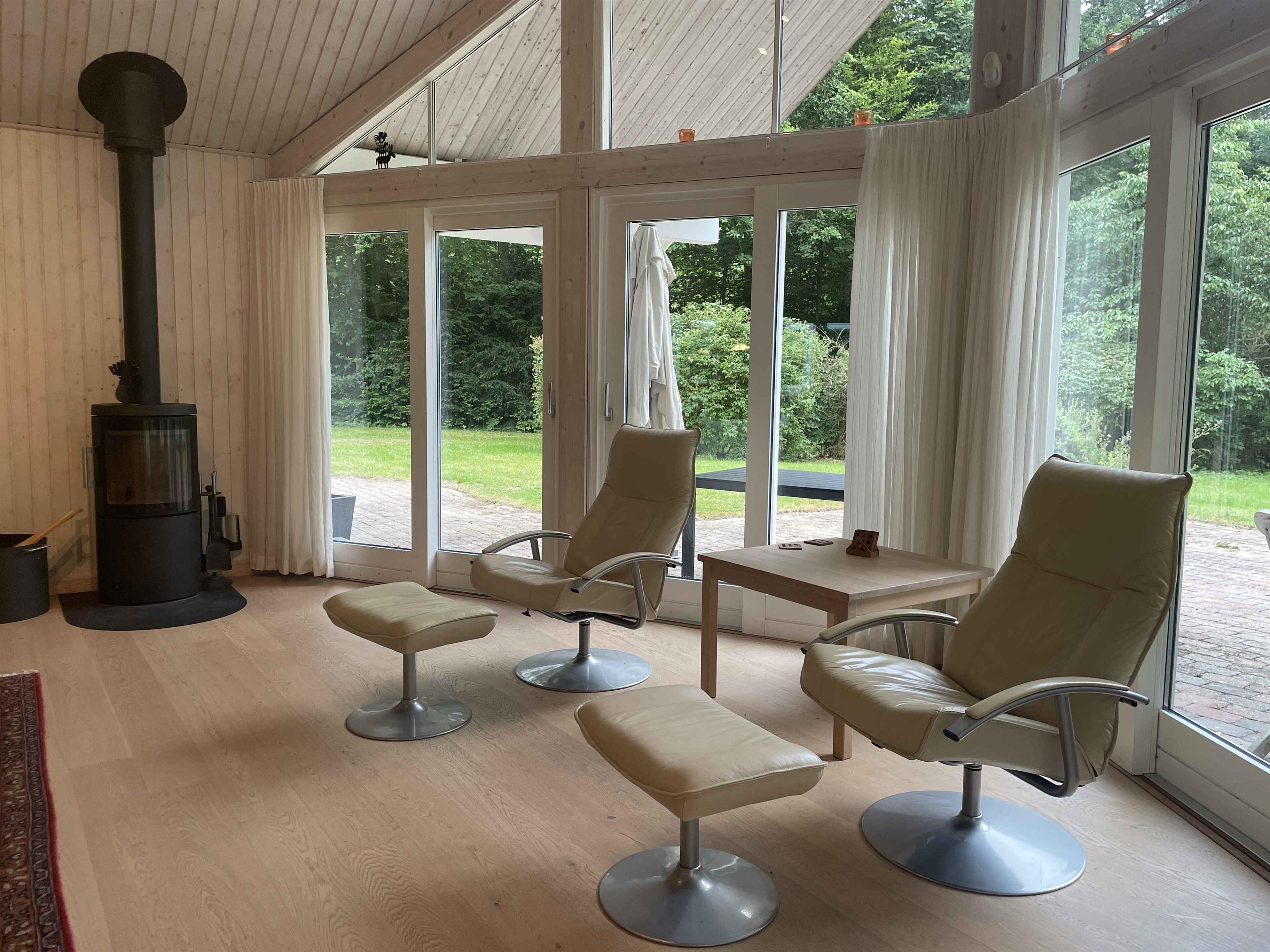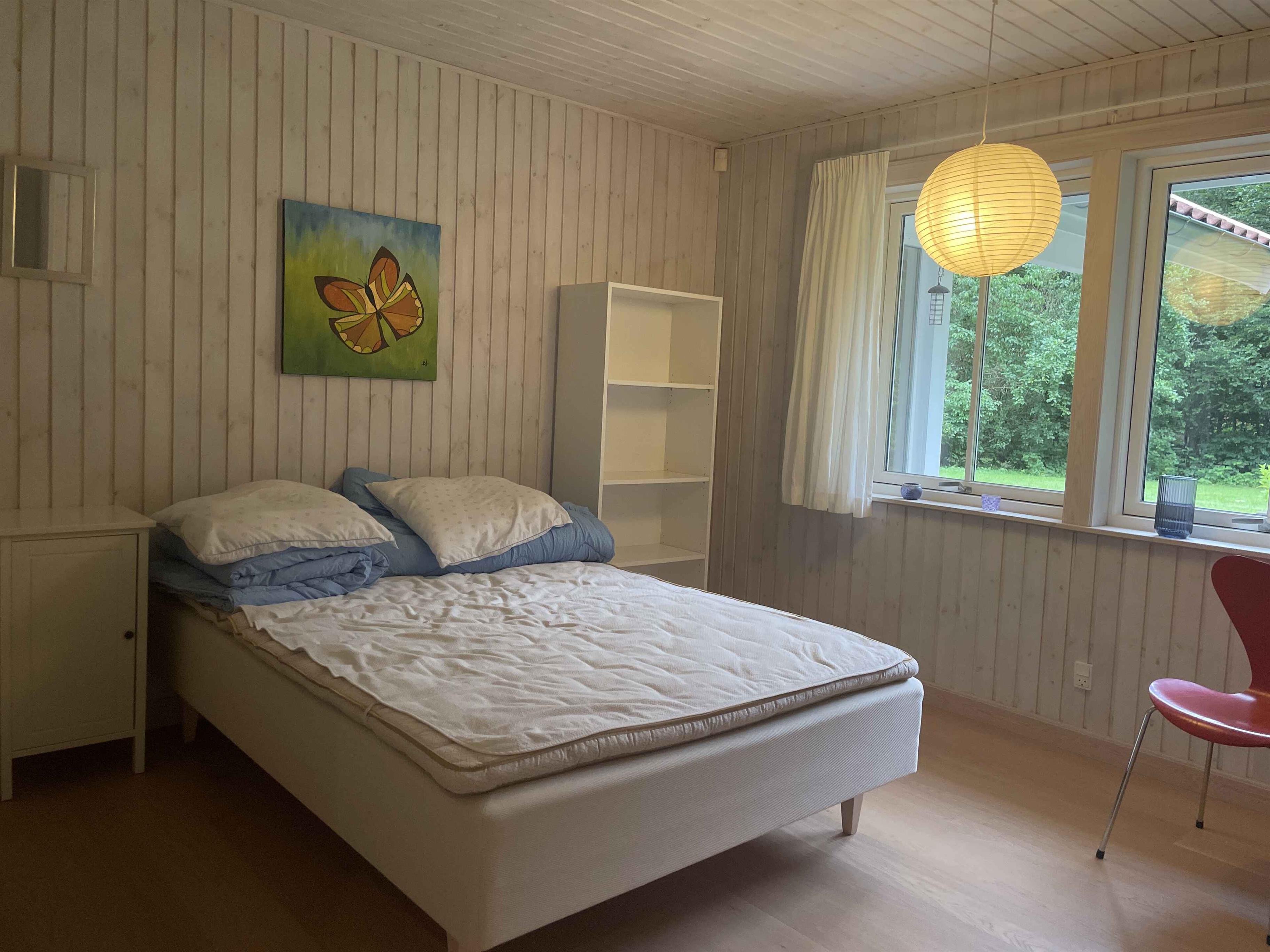 Ein schönes, geräumiges Ferienhaus mit Platz für Gemeinschaft und Entspannung. Die 300 m² umfassen sechs separate Schlafzimmer mit insgesamt sechs Schlafplätzen – ideal für zwei Familien, die gemeinsam reisen. Hier stehen Ruhe, Gemütlichkeit und Zusammensein im Mittelpunkt – ohne Bildschirme und Elektronik. Das Haus liegt in einer ruhigen Umgebung mit viel Platz drinnen und draußen. Die große Terrasse, der Grillplatz und der gepflegte Garten laden zu Aktivitäten im Freien und langen Sommerabenden ein. Ein großzügiger Wintergarten verlängert den Tag, auch bei wechselhaftem Wetter. Innen ist das Haus komplett möbliert mit allem, was man braucht. Ein großer Esstisch bringt alle zu den Mahlzeiten zusammen, und Sofas und Liegestühle bieten Platz zum Entspannen. Es gibt ein TV-Zimmer, WLAN und klassische Brettspiele für ruhige Abende. Die Umgebung bietet vielfältige Naturerlebnisse. In der Nähe befinden sich Wälder, Wanderwege und ein See, ideal für Spaziergänge und Pausen mit Aussicht. Die Küste ist nur 6 km entfernt – mit schönen Stränden und kleinen Orten, ideal für einen Tagesausflug oder ein Eis in der Sonne. Ein perfekter Ort, um das Tempo zu drosseln und gemeinsam Zeit zu verbringen. Ob Sie die Natur erkunden oder einfach zu Hause entspannen möchten – Haus und Umgebung bieten den idealen Rahmen für einen erholsamen und bereichernden Urlaub. Achtung: Wird nicht für gewerbliche Nutzung vermietet.