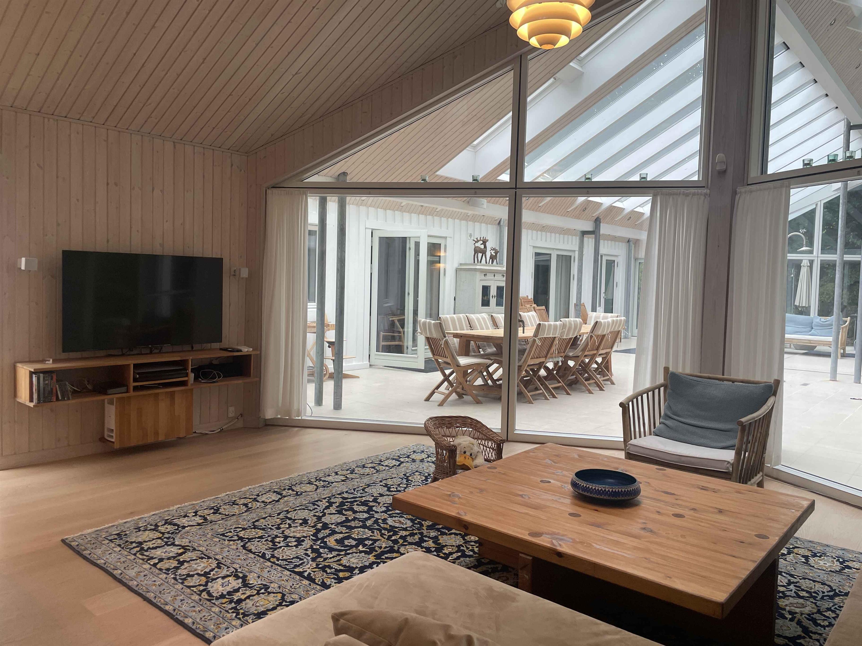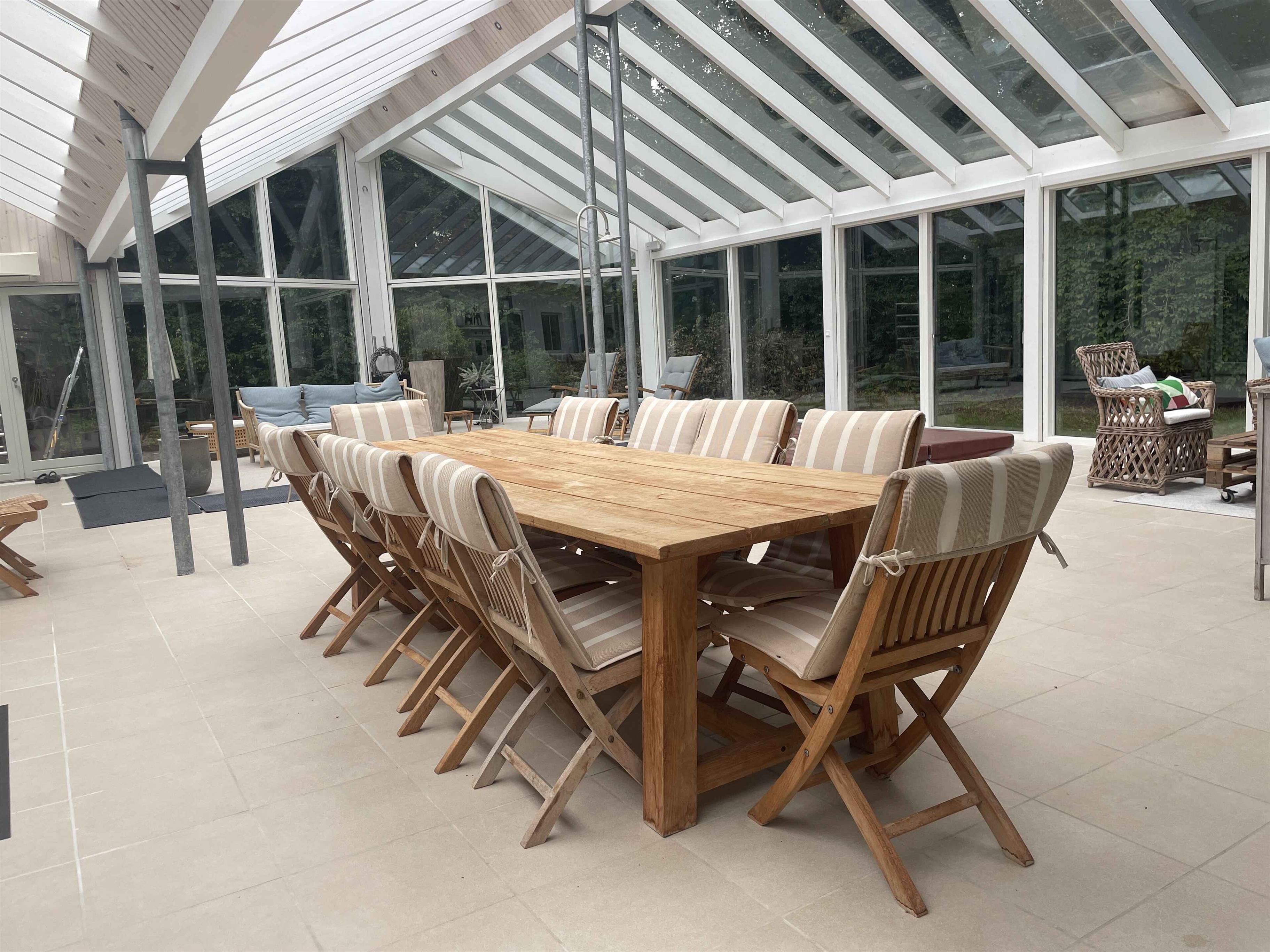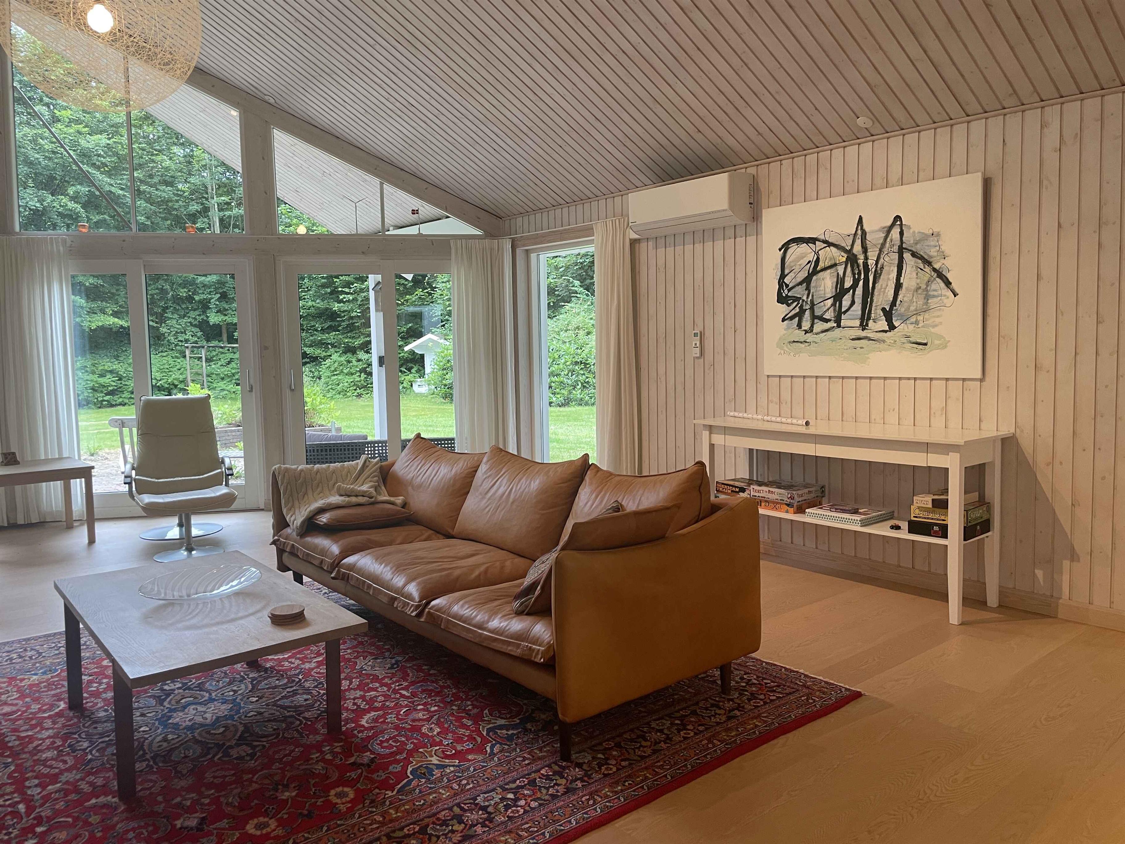 Ein schönes, geräumiges Ferienhaus mit Platz für Gemeinschaft und Entspannung. Die 300 m² umfassen sechs separate Schlafzimmer mit insgesamt sechs Schlafplätzen – ideal für zwei Familien, die gemeinsam reisen. Hier stehen Ruhe, Gemütlichkeit und Zusammensein im Mittelpunkt – ohne Bildschirme und Elektronik. Das Haus liegt in einer ruhigen Umgebung mit viel Platz drinnen und draußen. Die große Terrasse, der Grillplatz und der gepflegte Garten laden zu Aktivitäten im Freien und langen Sommerabenden ein. Ein großzügiger Wintergarten verlängert den Tag, auch bei wechselhaftem Wetter. Innen ist das Haus komplett möbliert mit allem, was man braucht. Ein großer Esstisch bringt alle zu den Mahlzeiten zusammen, und Sofas und Liegestühle bieten Platz zum Entspannen. Es gibt ein TV-Zimmer, WLAN und klassische Brettspiele für ruhige Abende. Die Umgebung bietet vielfältige Naturerlebnisse. In der Nähe befinden sich Wälder, Wanderwege und ein See, ideal für Spaziergänge und Pausen mit Aussicht. Die Küste ist nur 6 km entfernt – mit schönen Stränden und kleinen Orten, ideal für einen Tagesausflug oder ein Eis in der Sonne. Ein perfekter Ort, um das Tempo zu drosseln und gemeinsam Zeit zu verbringen. Ob Sie die Natur erkunden oder einfach zu Hause entspannen möchten – Haus und Umgebung bieten den idealen Rahmen für einen erholsamen und bereichernden Urlaub. Achtung: Wird nicht für gewerbliche Nutzung vermietet.