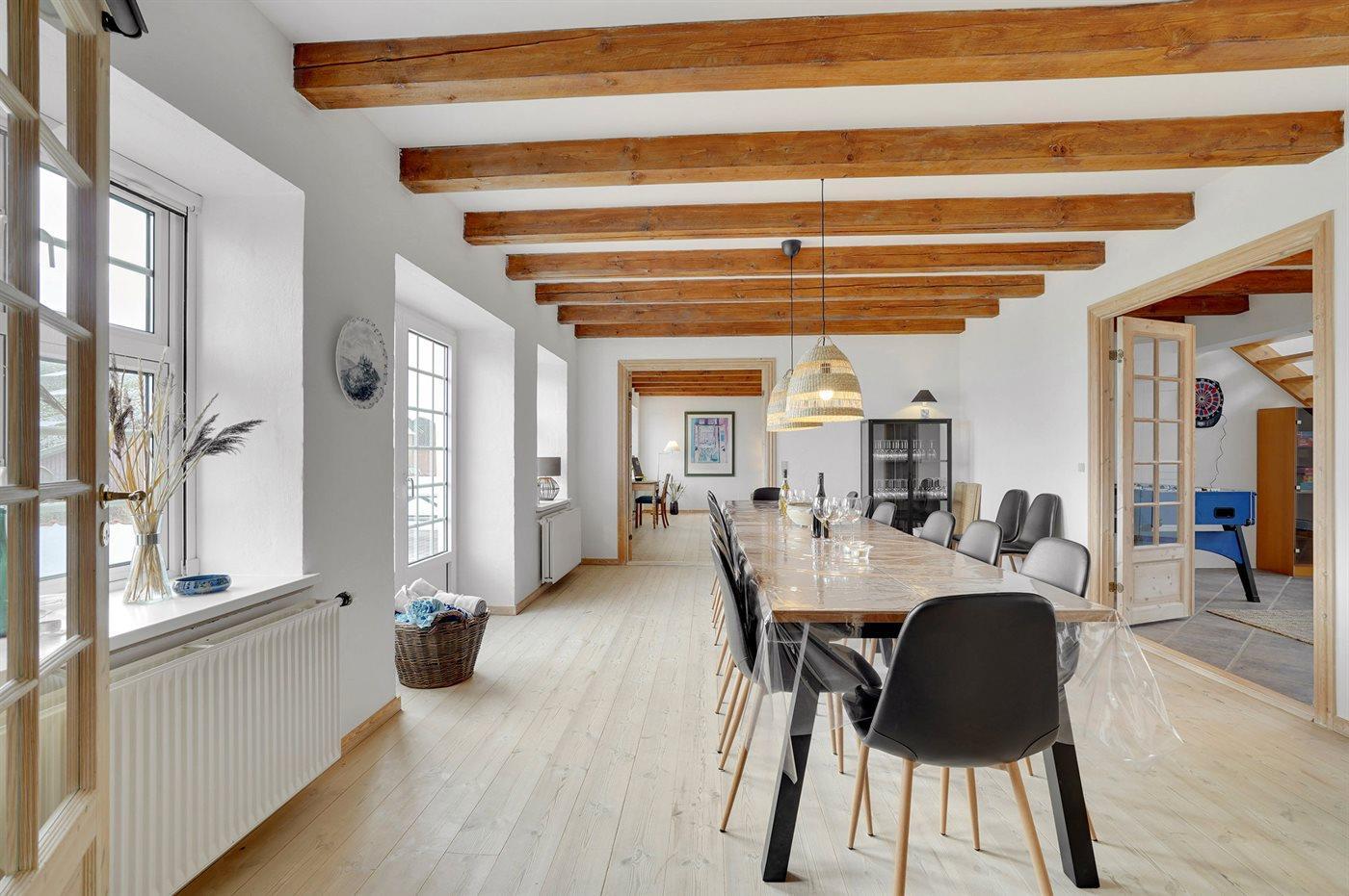 Mit einem phantastischen Ausblick auf den Limfjord liegt dieser ehemalige Bauernhof, der sich aufgrund seiner Größe und Einrichtung perfekt für mehrere Familien oder Paare eignet, die einen gemeinsamen Urlaub unter ein und demselben Dach verbringen möchten. Der Sonnenaufgang am Limfjord ist einzigartig und ganz bestimmt die Mühe wert morgens früh aufzustehen. Die Stadt Struer, mit guten Einkaufsmöglichkeiten, liegt nicht weit vom Haus entfernt. In Struer finden Sie auch das Struer Museum, welches auf das Thema “Laute” fokussiert, da Struer als “Lydens by” auf deutsch die “Stadt der Laute” bekannt ist.