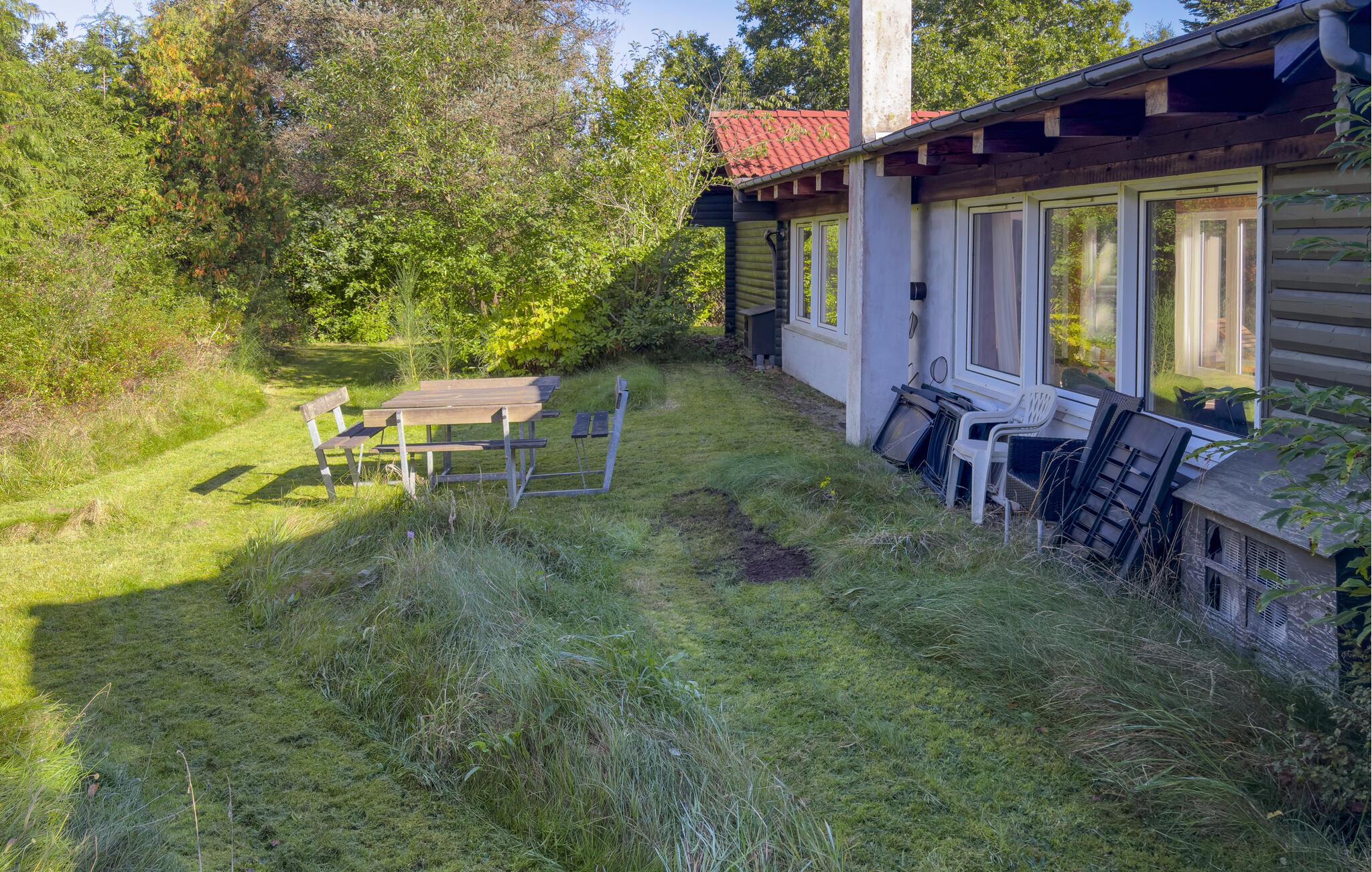Auf der Terrasse können Sie in der Sonne liegen, auf den Gartenmöbeln entspannen oder gemeinsam grillen. Der weitläufige Garten mit Rasenfläche und umgebenden Bäumen sorgt für Privatsphäre und lädt zum Spielen, Lesen oder einfach zum Genießen der Ruhe ein.