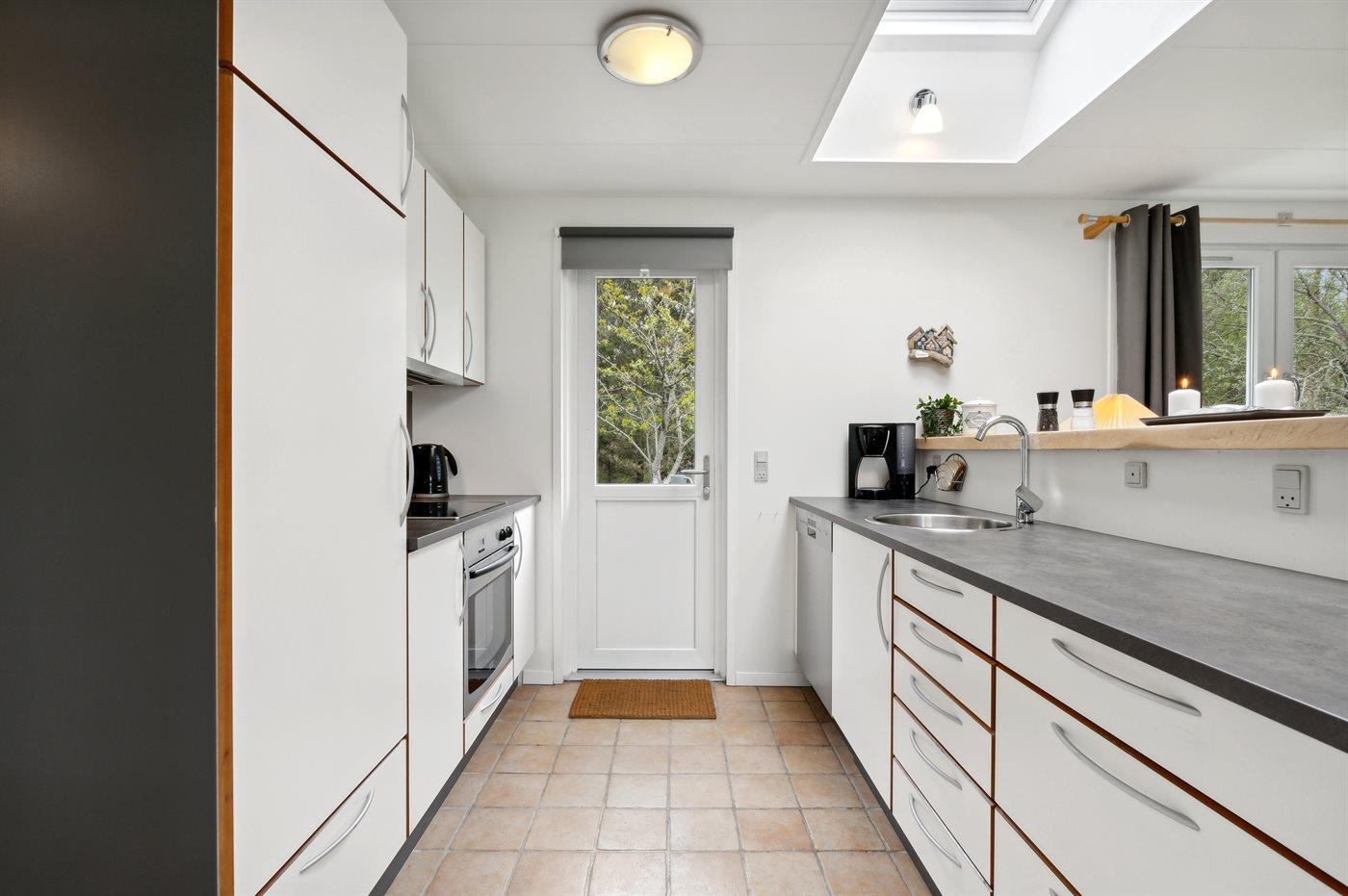 Die Küche ist mit Kühlschrank ausgestattet. Außerdem gibt es 4 Induktions-Kochzonen, Umluftofen, Mikrowelle sowie Geschirrspüler.