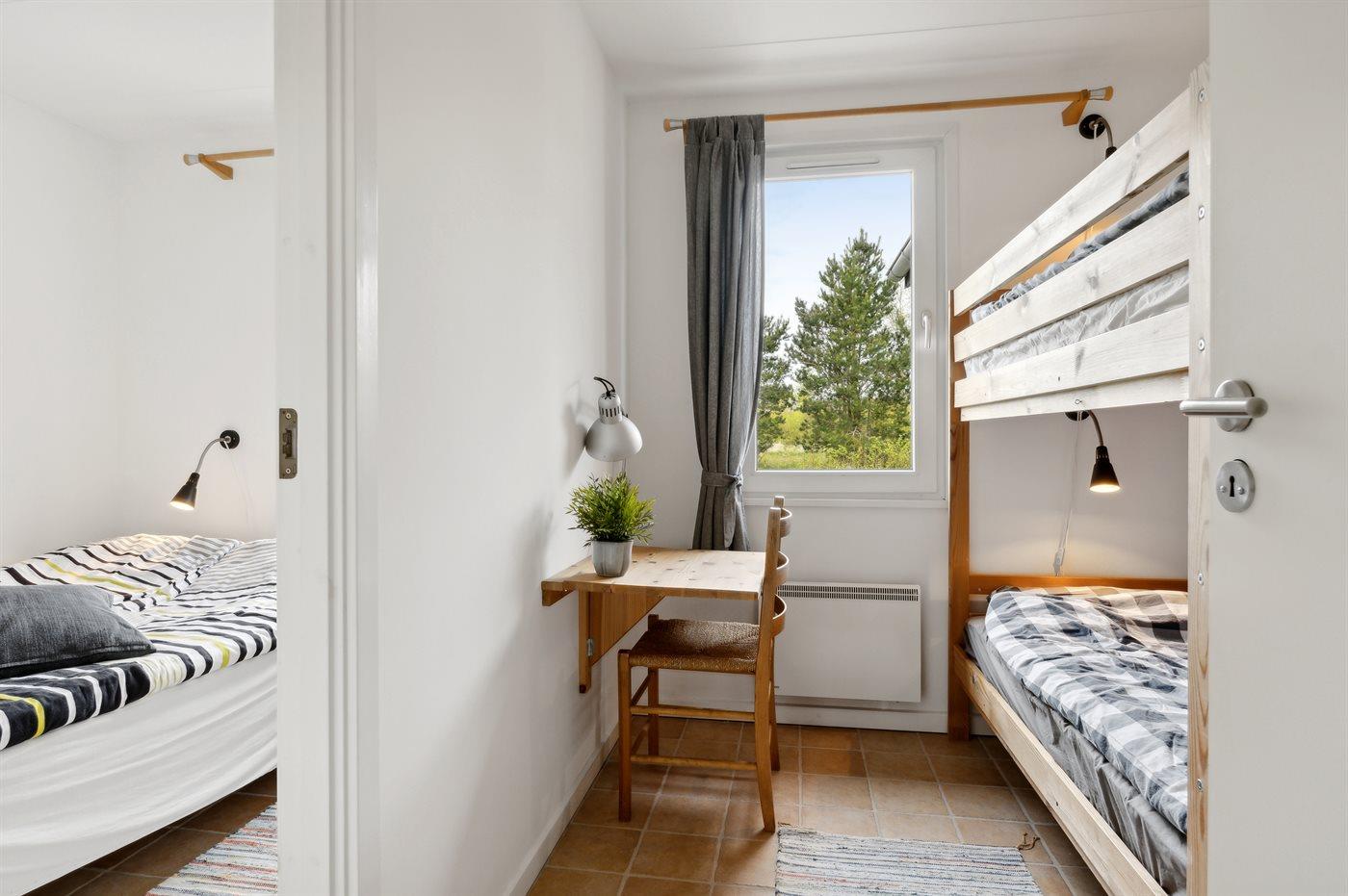Die Schlafplätze verteilen sich auf 3 Schlafräume. 4 Schlafplätze in Doppelbetten. 2 Schlafplätze in einem Etagenbett.