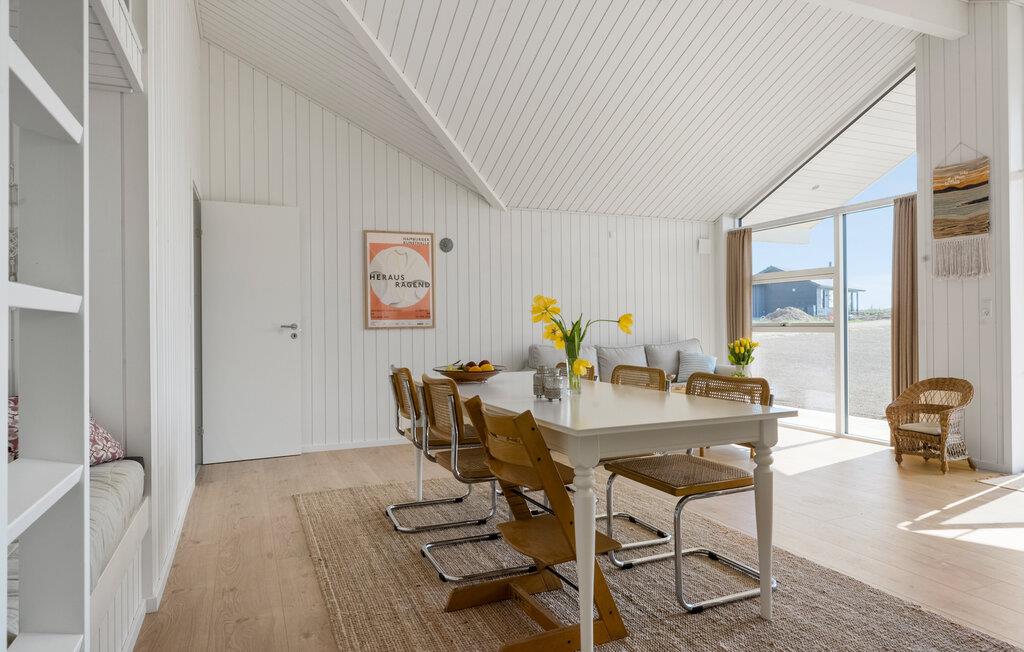 Mit einem hellen Innenbereich begrüßt Sie dieses moderne Urlaubsdomizil, in dem Sie mit Ihren Liebsten vom Alltag abschalten können. Lassen Sie sich vom Blick in die Weite inspirieren, während Sie in der offenen Küche Ihre Mahlzeiten zaubern. Ihre Kinder finden charmante Spielmöglichkeiten und gemütliche Alkoven zum Lesen vor, während Sie in der Sauna entspannen. Versammeln Sie sich abends auf dem bequemen Sofa, streamen Sie einen Film oder genießen Sie gute Gespräche bei einem Glas Wein.