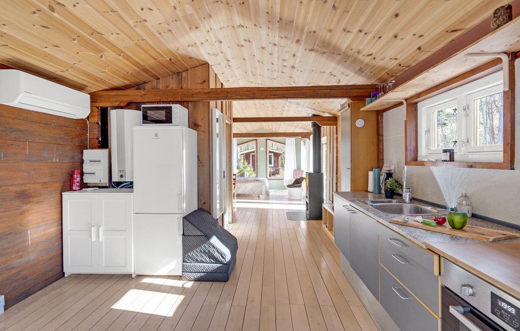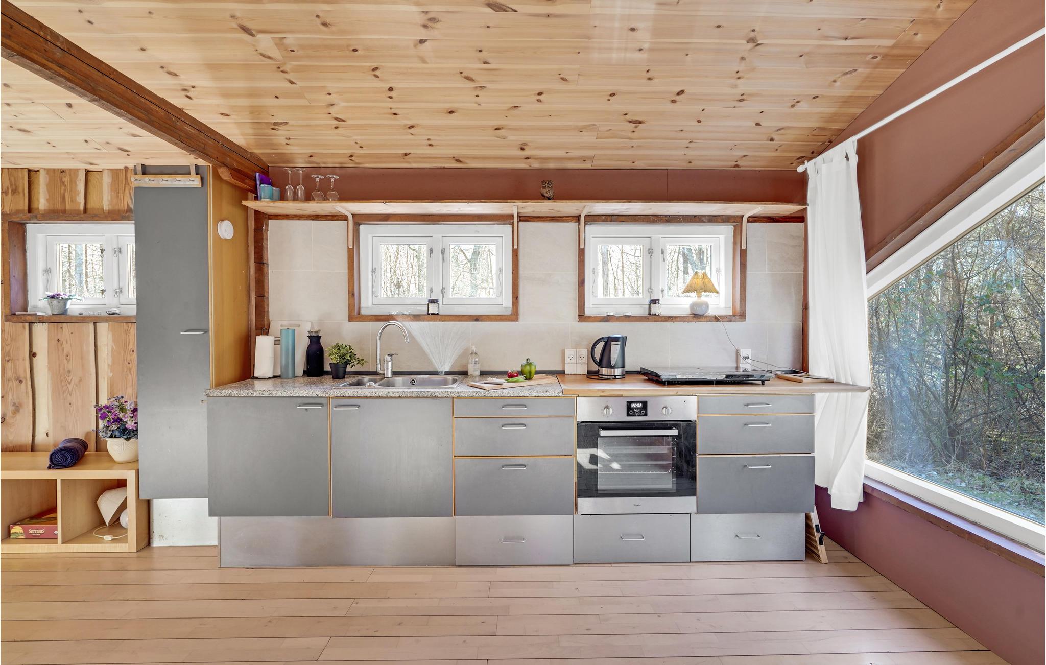 Im Innenraum finden Sie ein funktionelles und einfach eingerichtetes Domizil, mit einem offenen Wohnkonzept und ideal für bis zu 2 Personen. Ein idyllisches Ambiente mit Kaminofen, Holzverkleidung und großen Fenstern für den Einfall natürlichen Lichts. Genießen Sie bei gutem Wetter Entspannung auf den Sonnenliegen und leckere Gerichte vom Grill auf der offenen Terrasse und genießen Sie die unmittelbare Nähe der Natur mit allen Facetten.