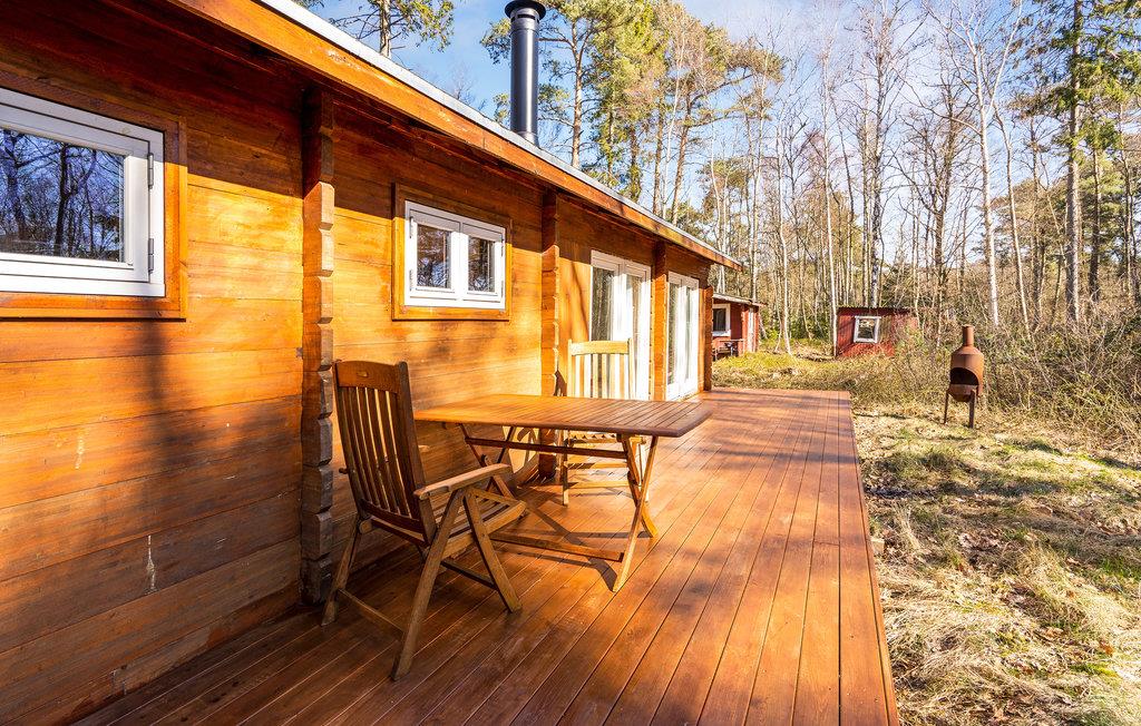 Naturnahes Ferienhaus am Wald mit Kaminofen und Terrasse auf Møn, ideal für Erholung und Naturgenuss.