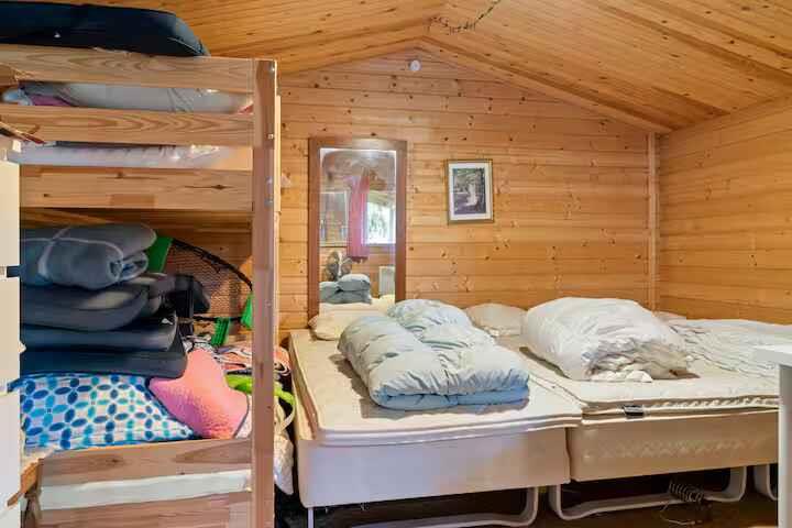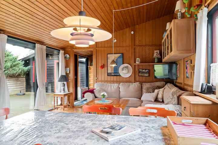 Hier haben Sie die Möglichkeit, im Sommerhaus der Großmutter Urlaub zu machen. Authentischer „Sommerhausduft“, Ruhe und die Freude am einfachen Leben. Denken Sie an den Duft von Pfannkuchen, Sand zwischen den Zehen und eine Hängematte im Schatten. Kommen Sie und schaffen Sie Sommererinnerungen fürs Leben. Das Haus ist 60 m² groß, mit drei Schlafzimmern und sechs Schlafplätzen. Der Grundriss ist schlicht und funktional, damit alle zur Ruhe kommen. Küche und Wohnzimmer vereinen die Familie zum Spielen, Kochen und Plaudern nach dem Strand. Nach 900 Metern erreichen Sie das Wasser. Draußen warten der Garten, eine große überdachte Terrasse mit rotkariertem Tischtuch und ein gemütlicher Badezuber für klare Nächte. Die Hängematte lädt zum Nickerchen ein. Zwei kleine „Hütten“ geben Teenagern Freiraum. Hier ist Platz für Hygge – vom Morgenkaffee bis zum Grillen bei Sonnenuntergang. Sie wohnen nah an der Natur. Hören Sie morgens den Vogelgesang und erspähen Sie abends Rehe im Garten. Einfachheit tut gut: ein Buch lesen, Yahtzee spielen, Pfannkuchen backen – lassen Sie das Ferientempo seinen ruhigen Takt finden. Die Gegend ist bekannt für einen breiten, familienfreundlichen Sandstrand mit Dünen und seichtem Wasser. Gute Radwege, Strandpromenade mit Eis, Cafés und Minigolf sowie Kitesurfen und Windsurfen. Naturpfade führen zum Bøtø Nor und in den Wald, mit weidenden Pferden und reichem Vogelbestand. Badestege, Strandspiele und Sonnenuntergänge in den Dünen. Ausflüge sind leicht: Marielyst Torv bietet Märkte und kleine Läden, Gedser Odde weite Horizonte und Steinstrände, Nykøbing Falster Museum, Zoo und gemütliche Gassen. Golf, Go-Kart und Spielparks in der Nähe. Alles greifbar. Cafés, eine Räucherei und Hofläden sorgen für Genuss.