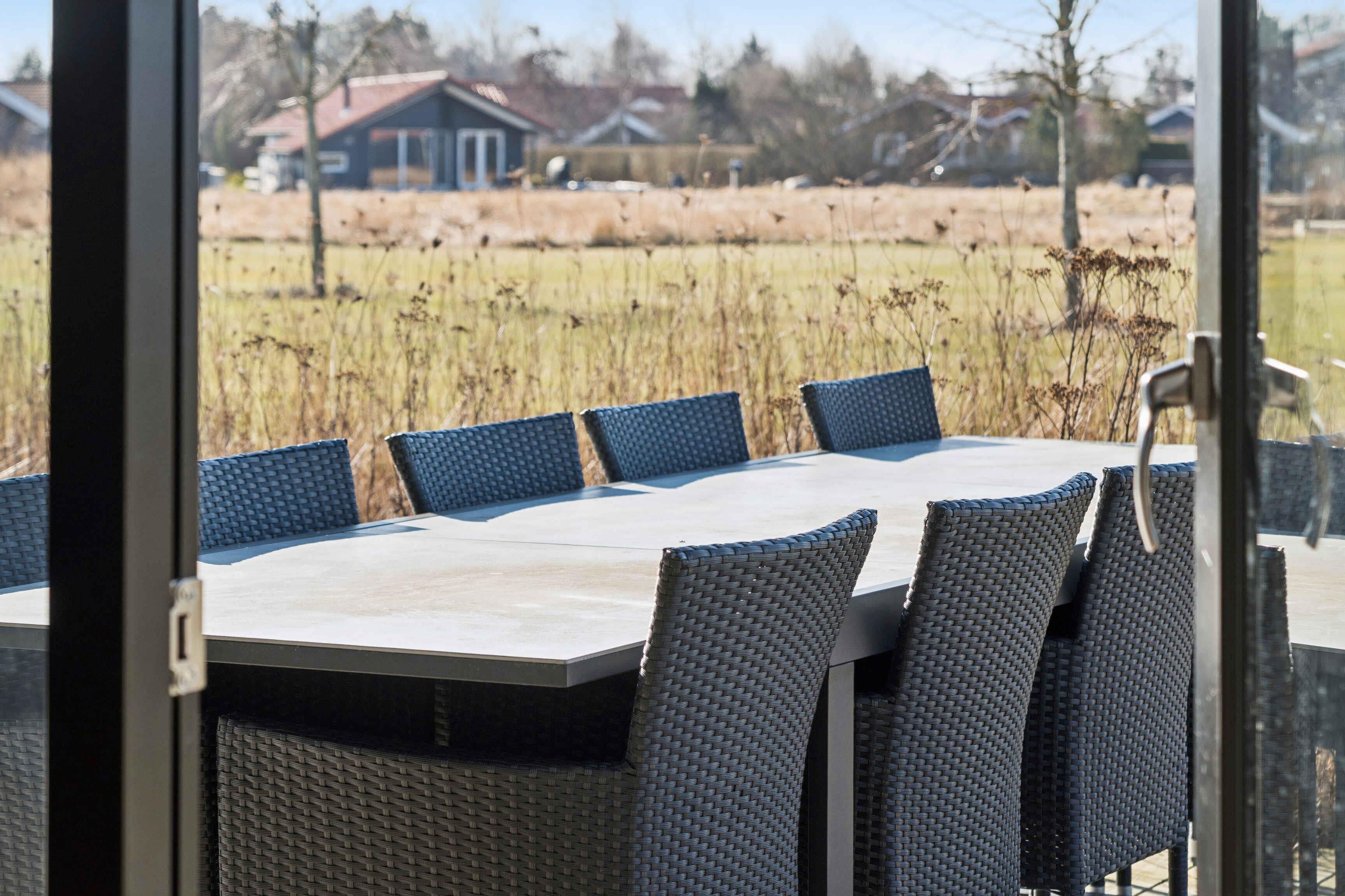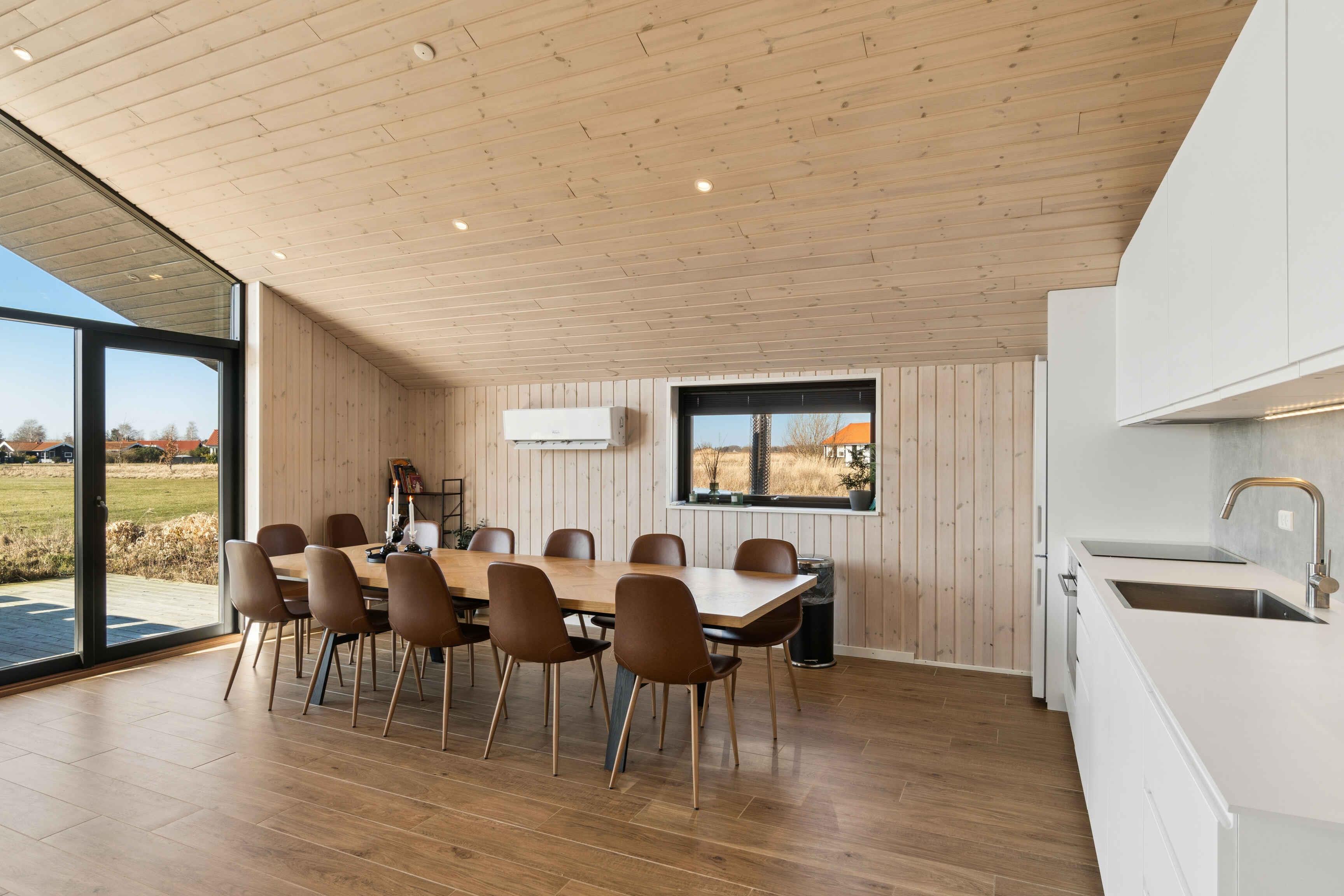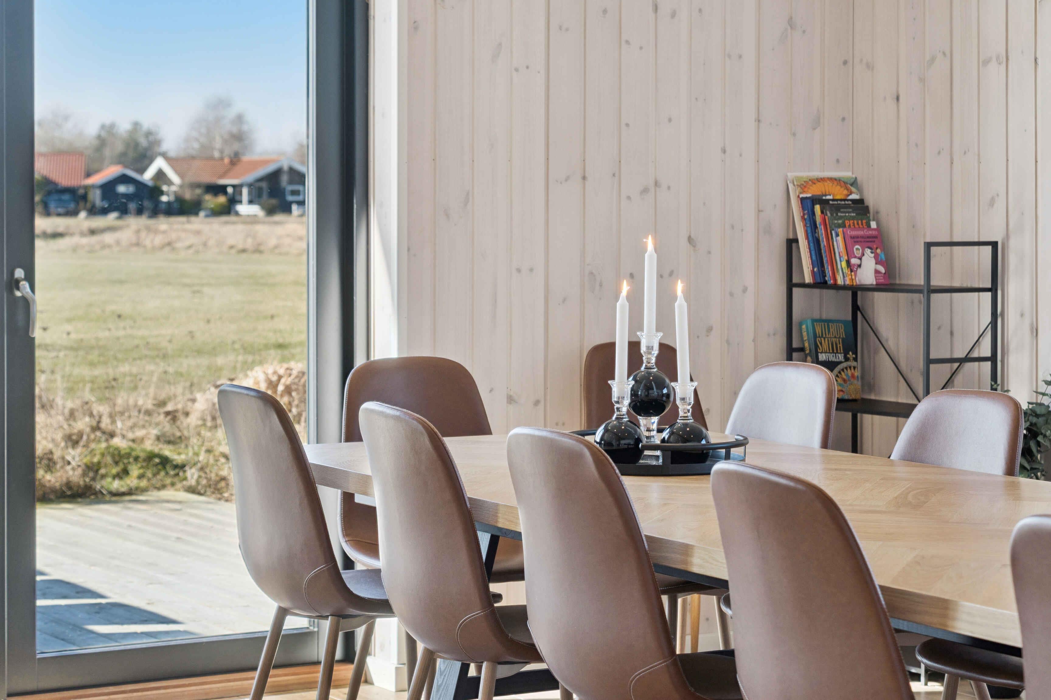 Modernes Ferienhaus von 2024 mit 112 m² für 10 Personen. 4 Schlafzimmer und Schlafboden, offener Wohnbereich und große Terrasse. Luxuriöser Badezuber für 6 Personen. Ruhige Lage, ca. 1.300 m zum Strand. Nahe Marielyst, Aktivitäten und Natur.
