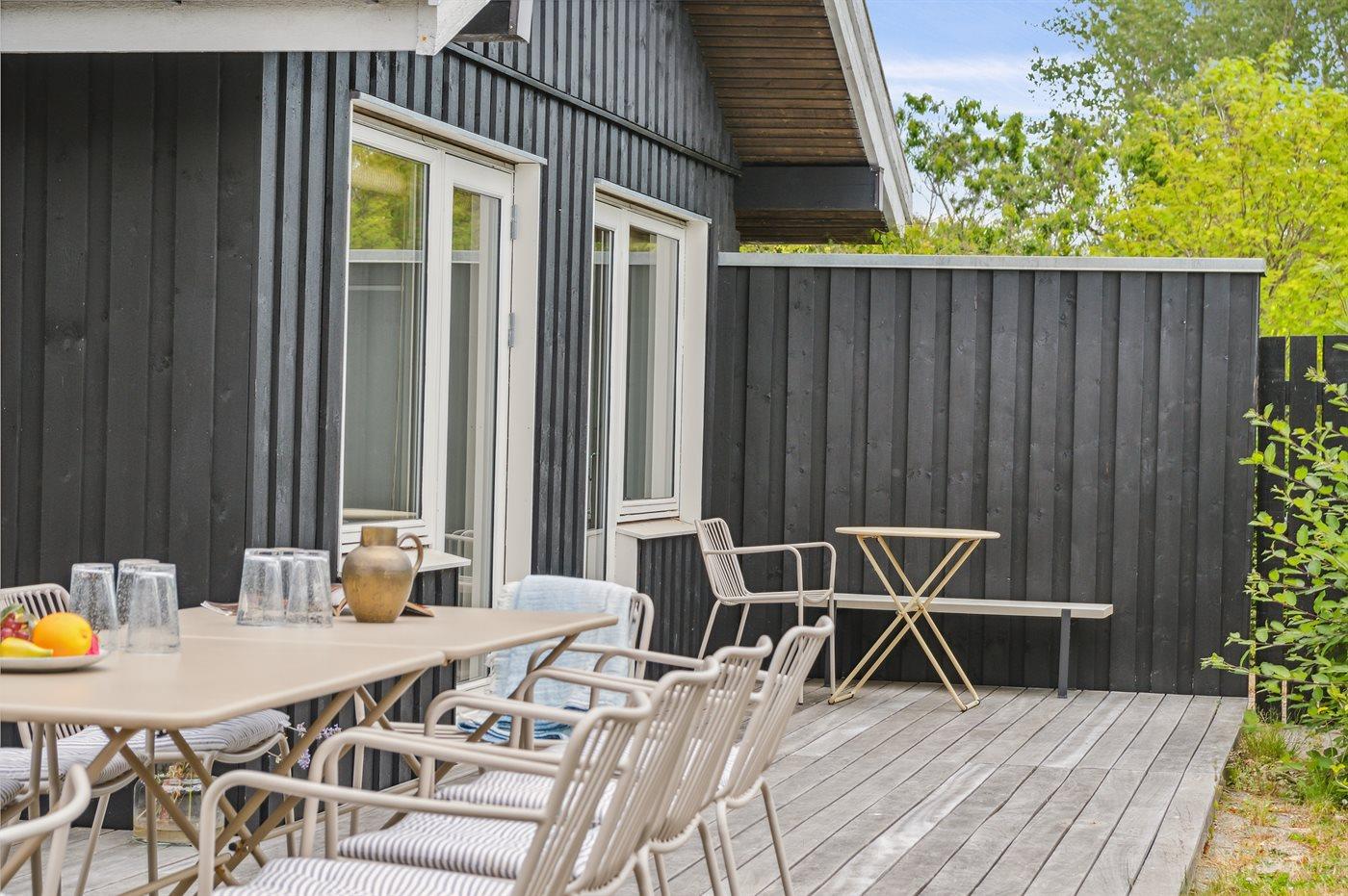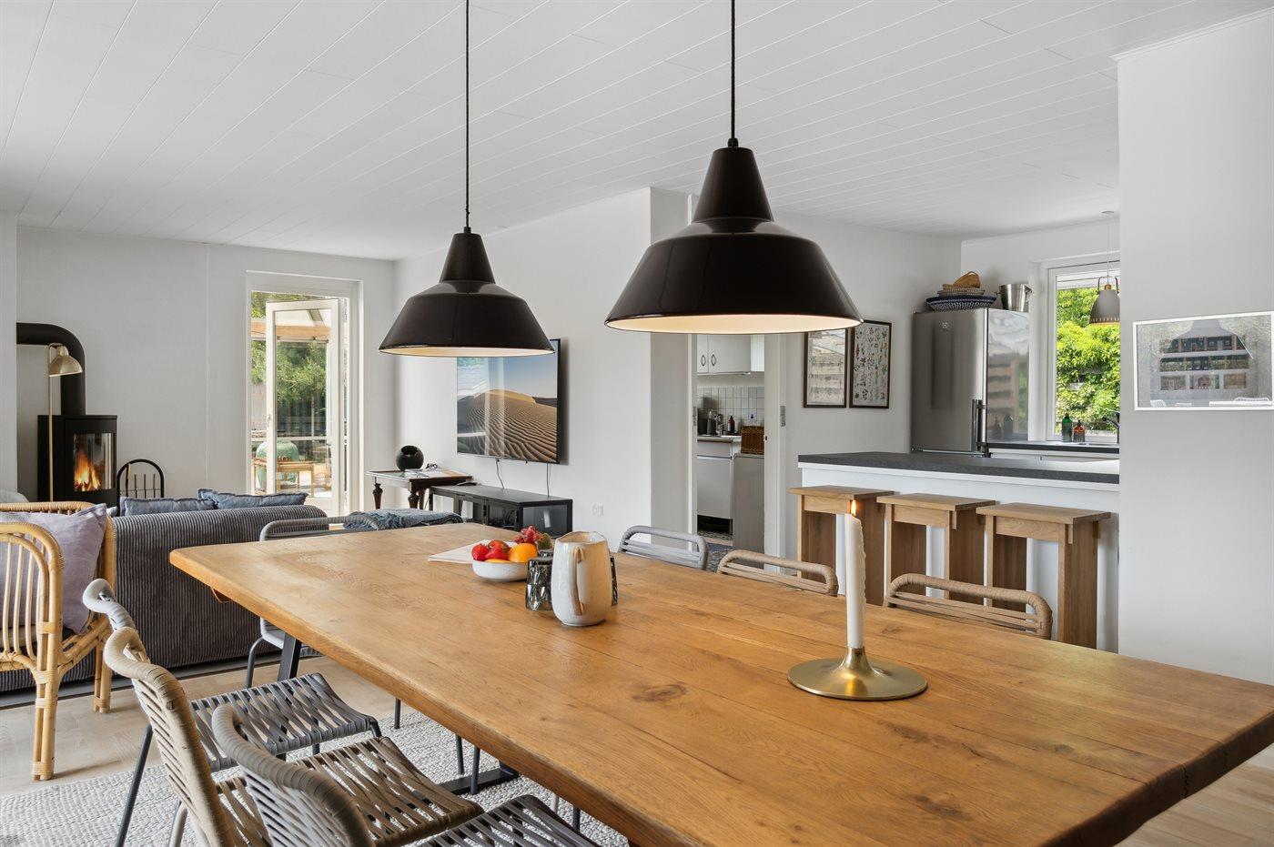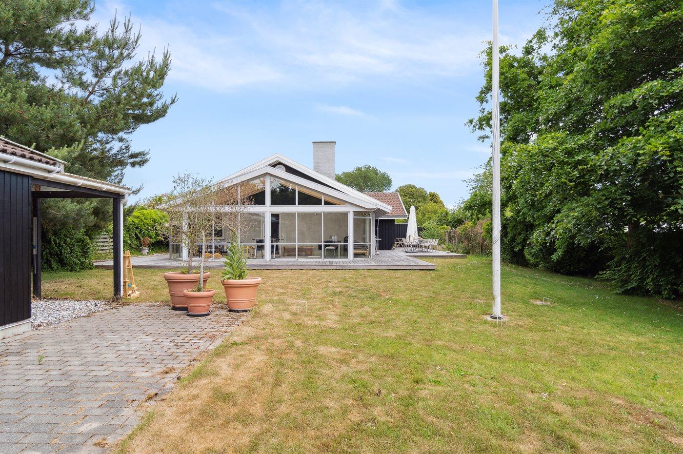 Ein schön gelegenes Ferienhaus mit weniger als 300 m zum Strand. Das Haus ist sehr geräumig, 2021 modernisiert und tritt hell und funktionell hervor. Vom Wohnzimmer und der Wohnküche aus gibt es Zugang zu den großen und ungestörten Terrassenflächen, die zum Teil überdacht sind und wo ein Außenkamin zur Verfügung steht.