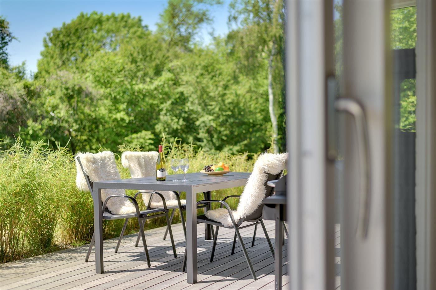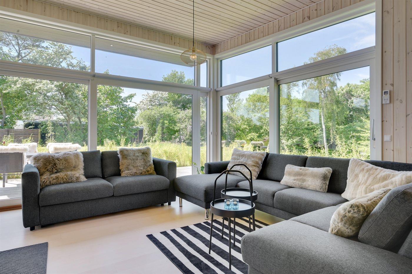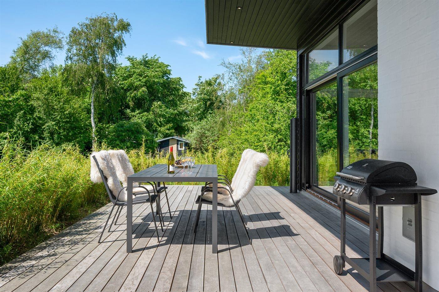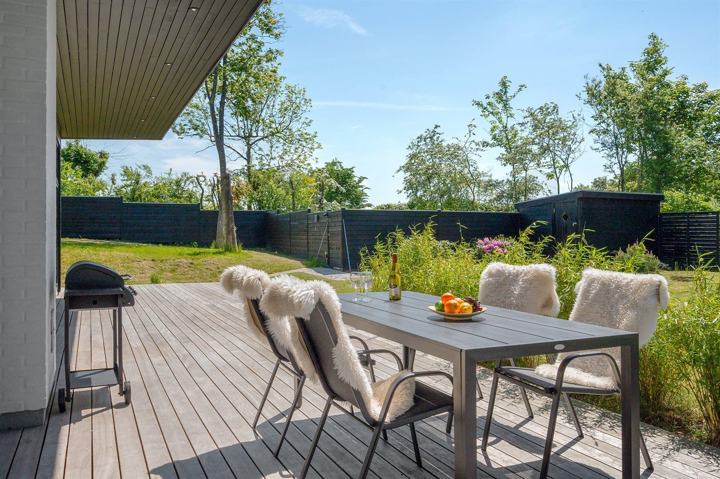 Modernes, gut ausgestattetes und geräumiges Ferienhaus in hoher Qualität und mit hohen Decken und viel Luft. Das Haus ist nur 300 Meter vom Strand entfernt und es gibt gute Naturgebiete wie Heatherhill in der Nähe. Nach dem Strandausflug besteht die Möglichkeit Sand und Salzwasser am ungestörten Terrassenbereich mit Außendusche abzuspülen.