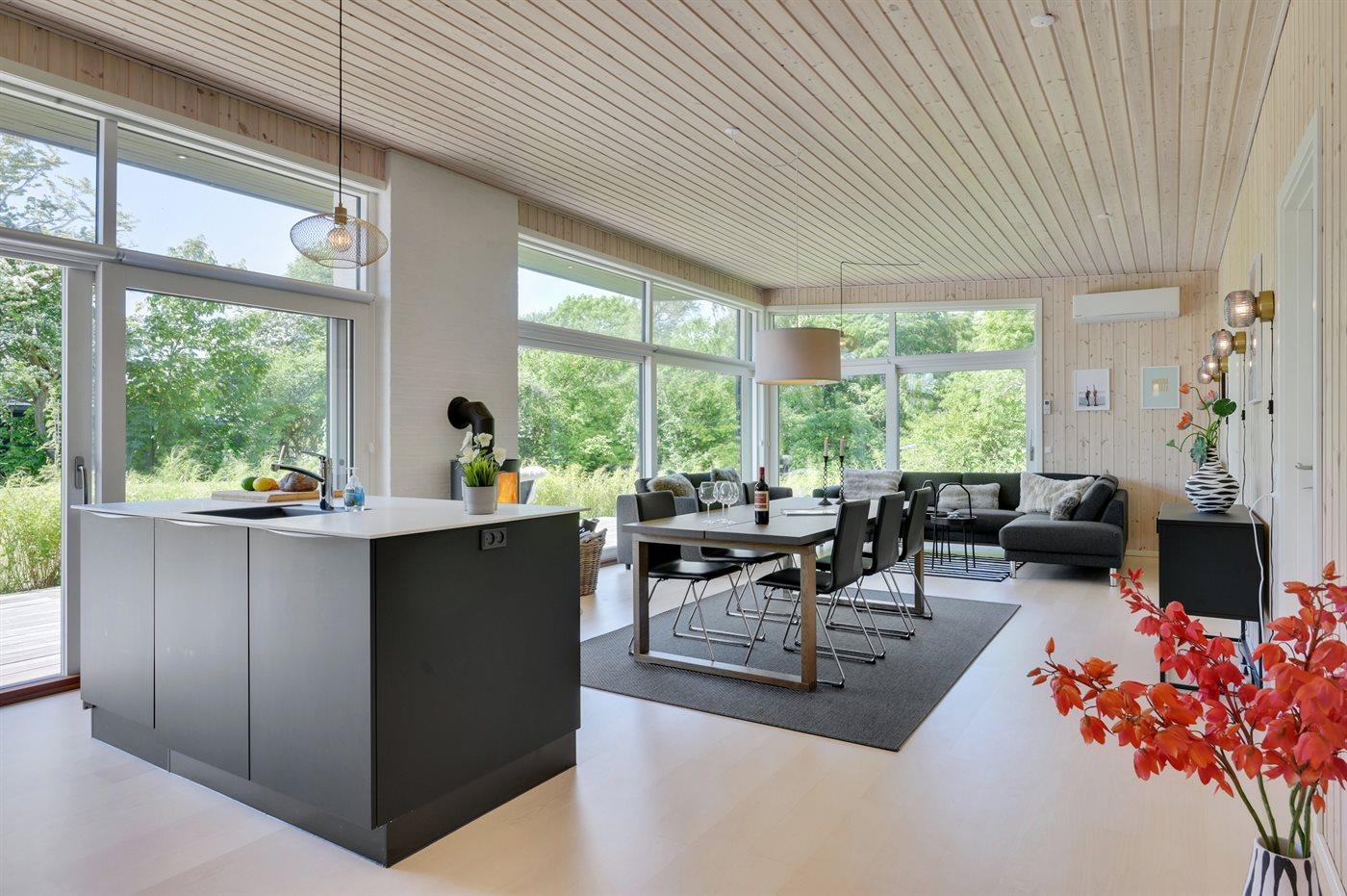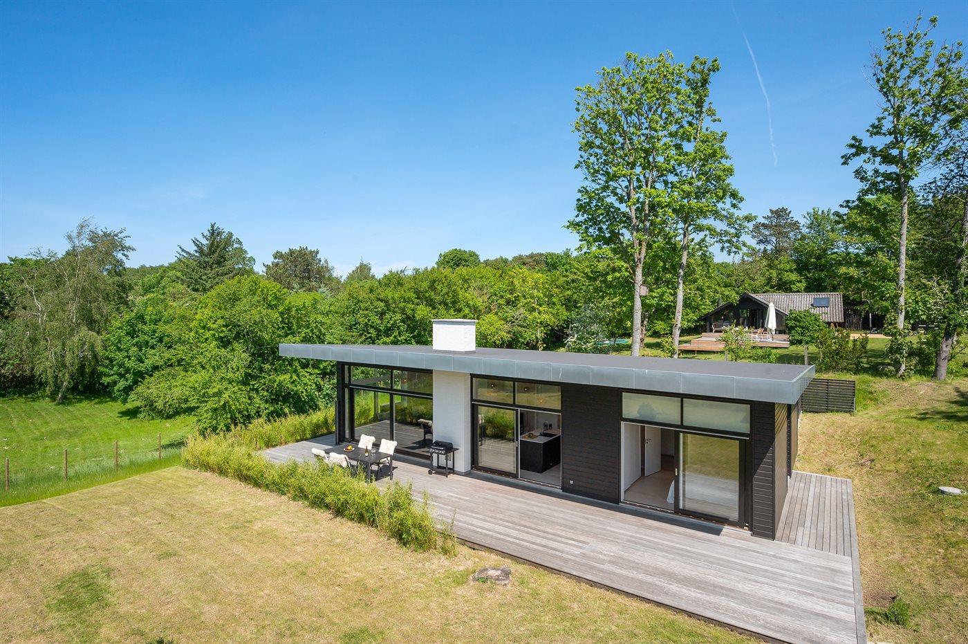 Modernes Ferienhaus nahe Vejby Strand mit hoher Decke, großer Terrasse und nur 300 m zum Meer.